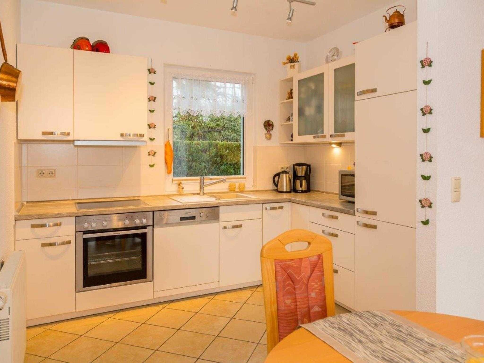 Der Wohnbereich verfügt über eine gemütliche Couch-Ecke, einen Flachbildfernseher und einen Essplatz für 6 Personen. Die moderne Küchenzeile schließt sich an den Wohnbereich an. Die Einbauküche ist komplett mit Backofen, Ceran-Herd, Spülmaschine, Mikrowelle, Kaffeemaschine, Toaster und viele Dinge mehr ausgestattet.
