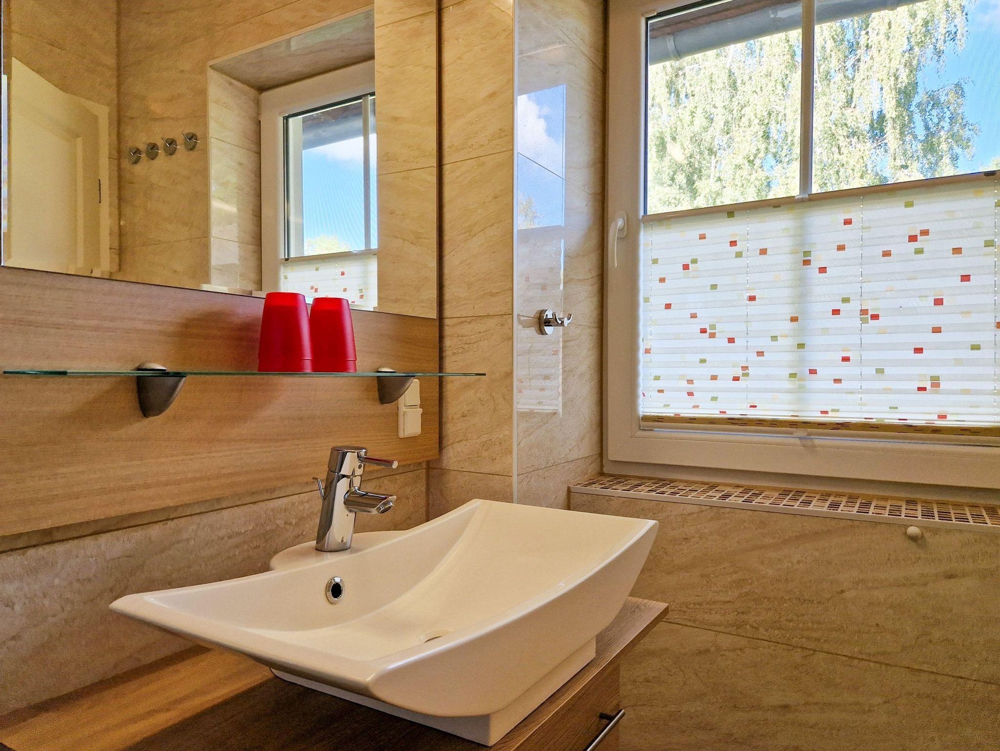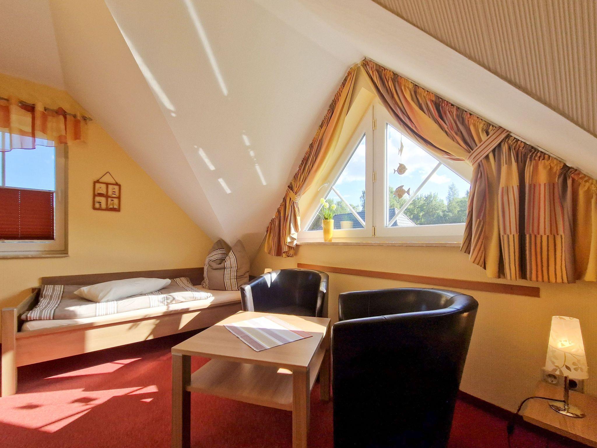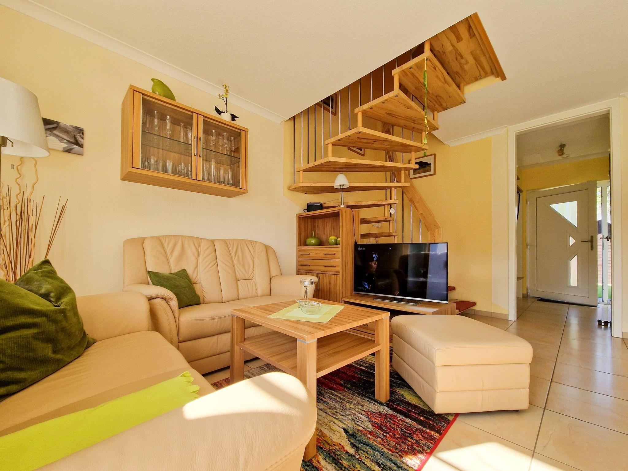 Die liebevoll eingerichteten Ferienwohnungen erstrecken sich über zwei Etagen. Im Erdgeschoss erwartet Sie ein einladender Wohnraum mit einer komplett ausgestatteten Küche sowie einem praktischen Hauswirtschaftsraum, in dem Ihnen auch eine Waschmaschine für kleinere Wäschearbeiten zur Verfügung steht. Zudem finden Sie im Erdgeschoss das Badezimmer mit WC und Dusche.