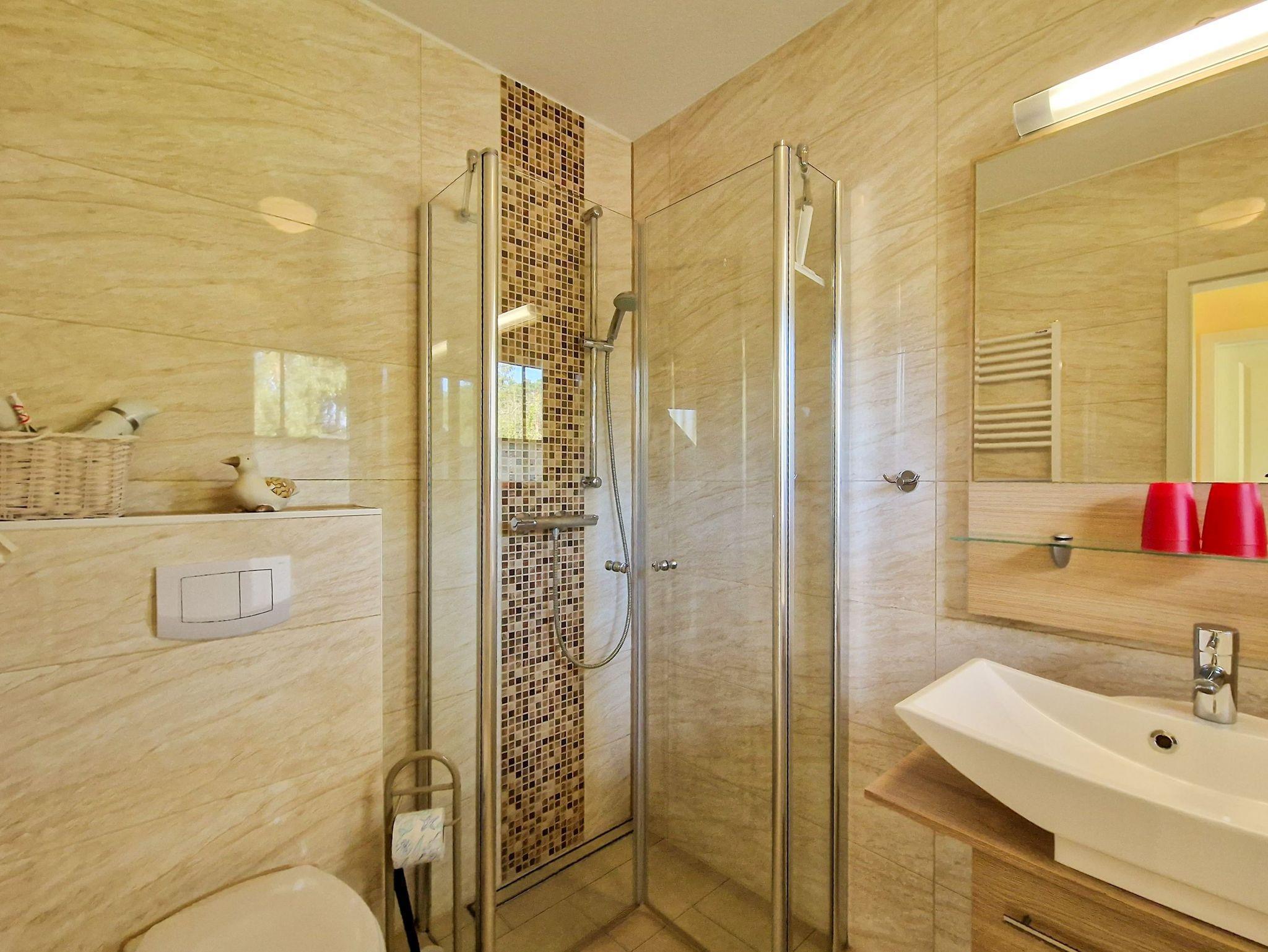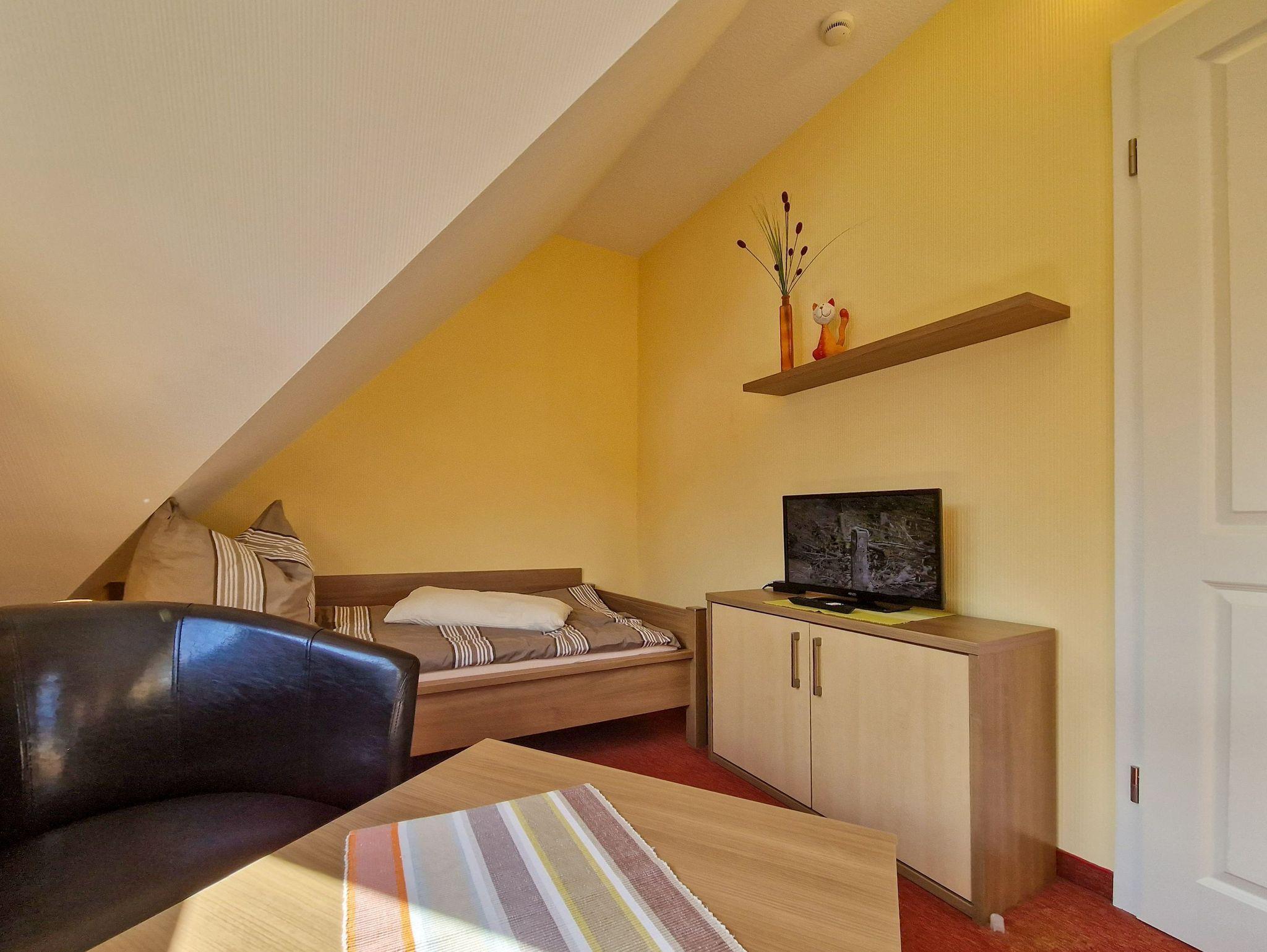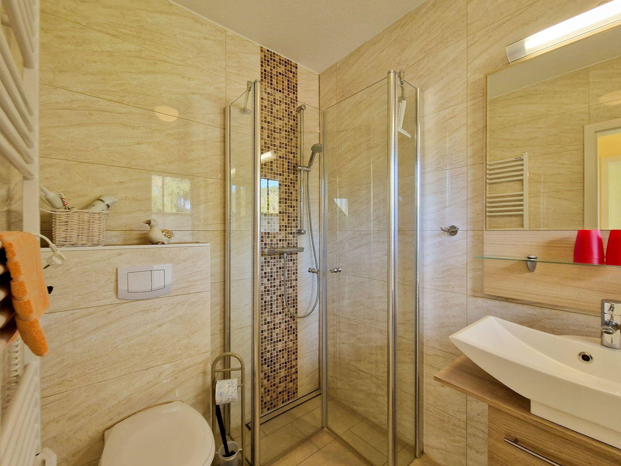 Die liebevoll eingerichteten Ferienwohnungen erstrecken sich über zwei Etagen. Im Erdgeschoss erwartet Sie ein einladender Wohnraum mit einer komplett ausgestatteten Küche sowie einem praktischen Hauswirtschaftsraum, in dem Ihnen auch eine Waschmaschine für kleinere Wäschearbeiten zur Verfügung steht. Zudem finden Sie im Erdgeschoss das Badezimmer mit WC und Dusche.