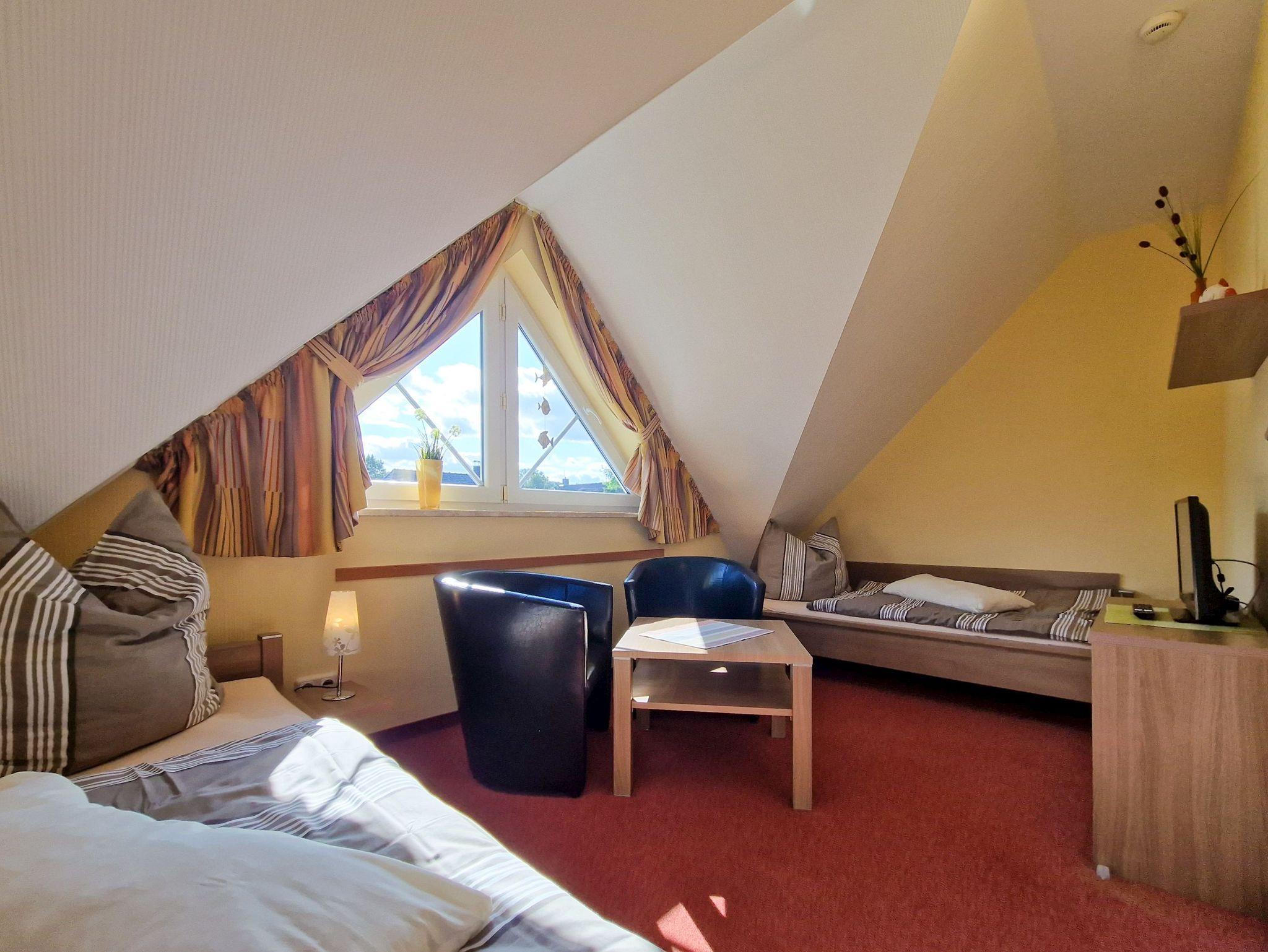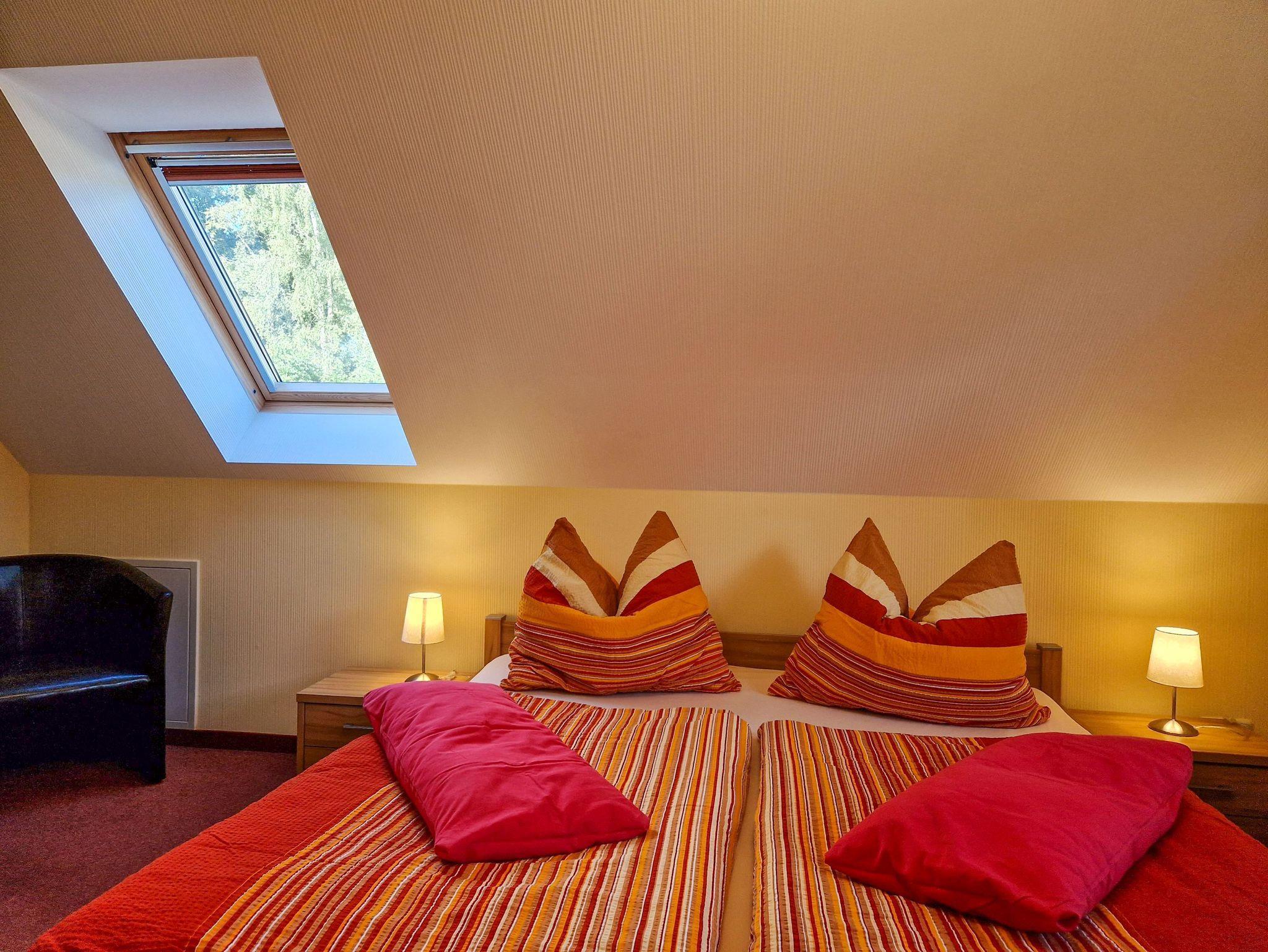 Im Obergeschoss befinden sich die beiden Schlafzimmer: eines mit einem gemütlichen Doppelbett und das andere mit zwei Einzelbetten.