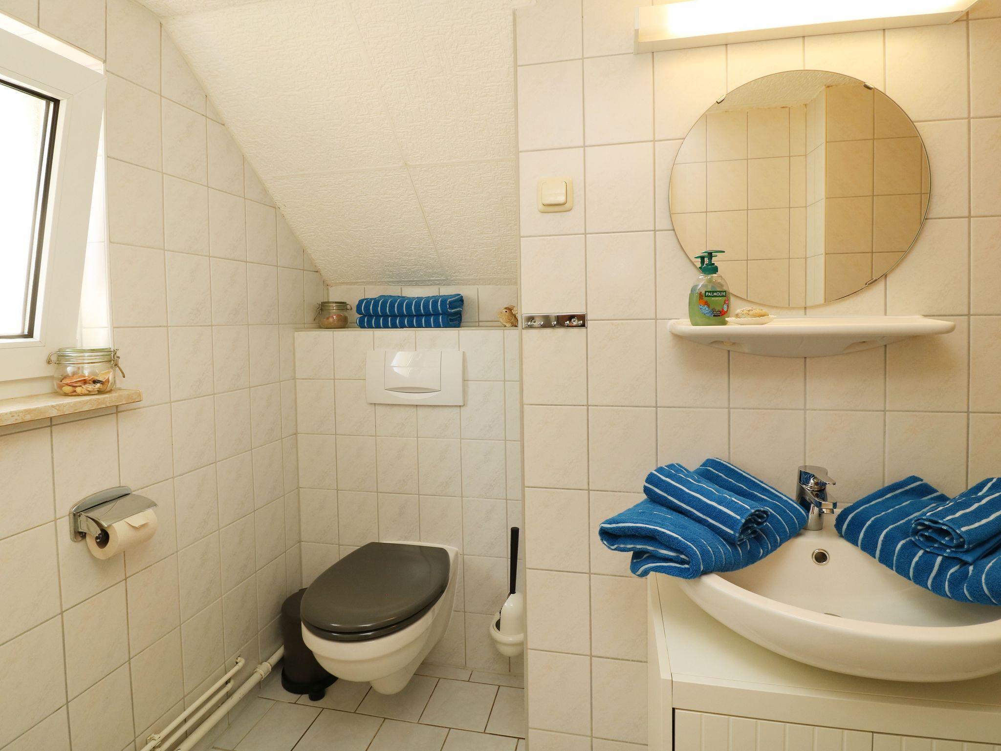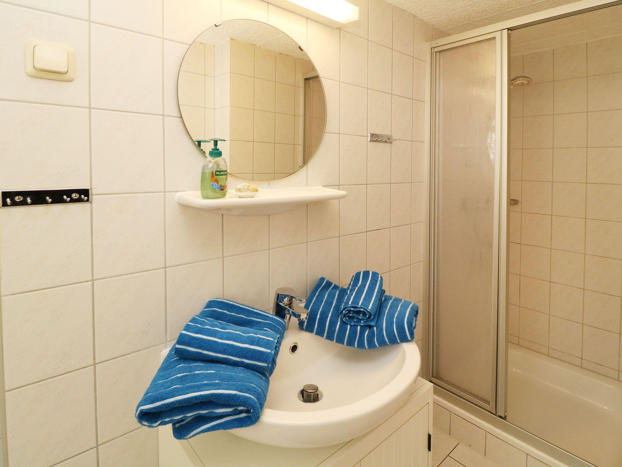 Das Bad befindet sich separat und beinhaltet Dusche und WC.