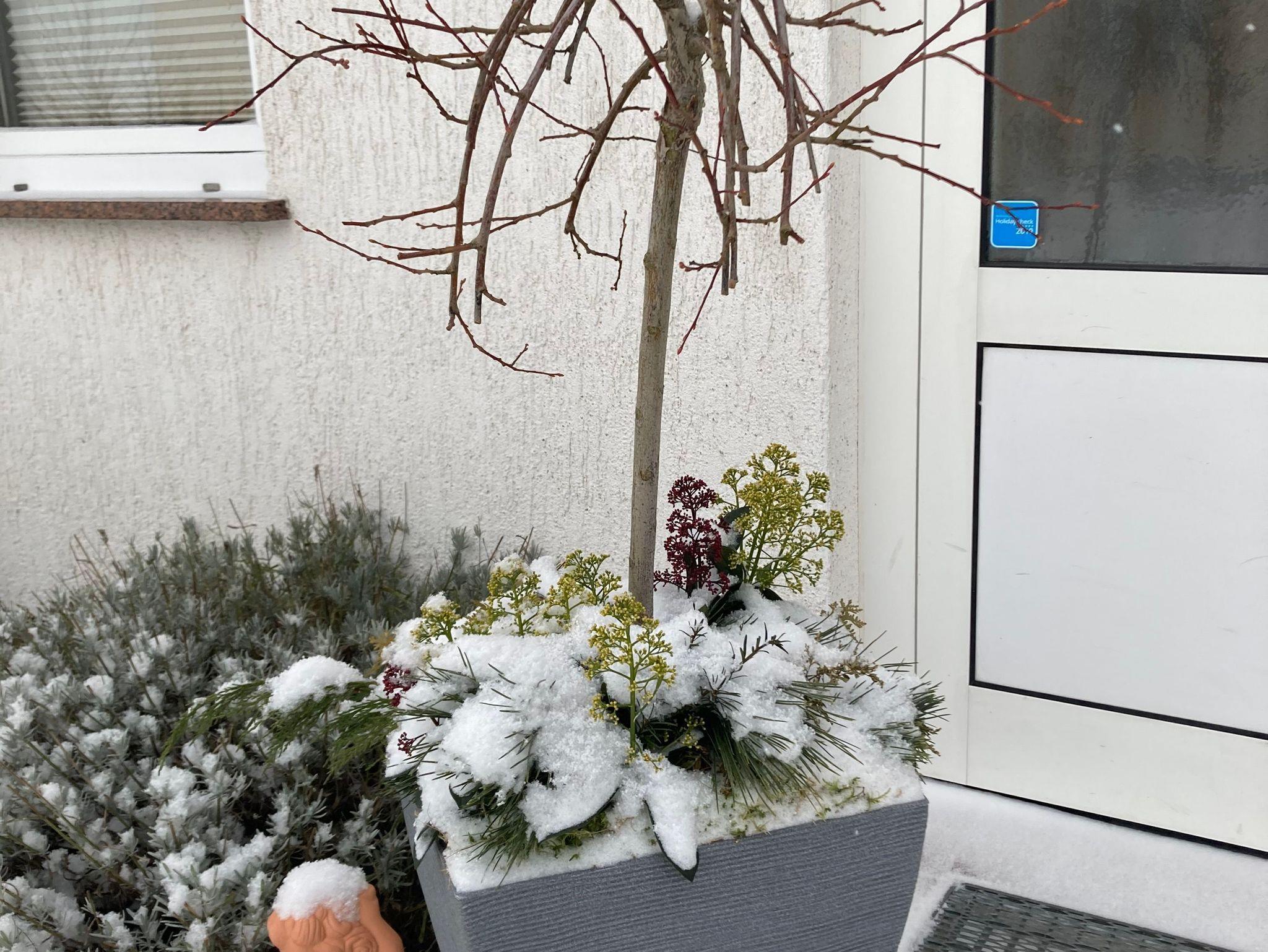 • Terrasse mit Sitzgarnitur, Sicht- und Sonnenschutz