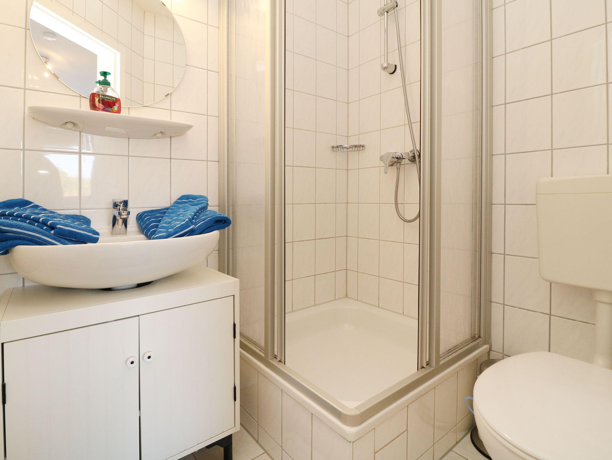 Das Bad befindet sich separat und beinhaltet Dusche und WC.