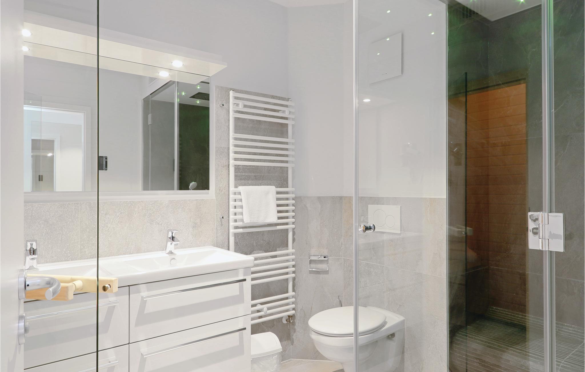 Das Badezimmer präsentiert sich als Ihr privater Wellness-Bereich. Hier können Sie es sich in der Infrarotsauna gemütlich machen oder im Dampfbad mit Regendusche entspannen. Es gibt außerdem ein modernes Entertainmentsystem mit Blu-Ray-Player, zwei Flatscreen-TV und einer Musikanlage mit MP3-Anschluss.