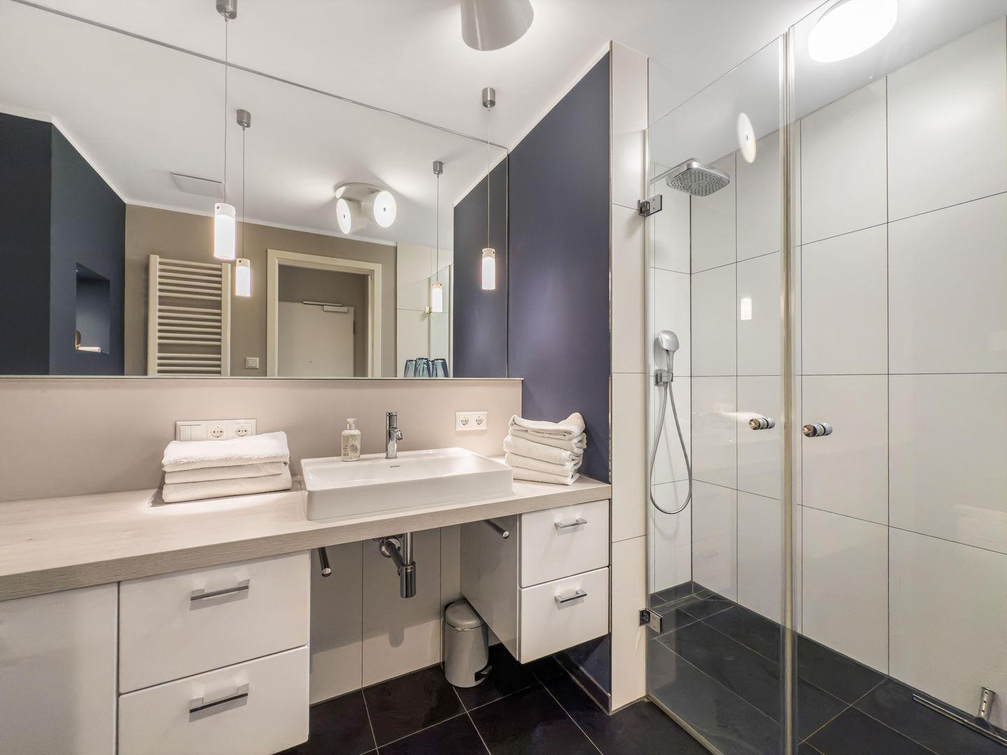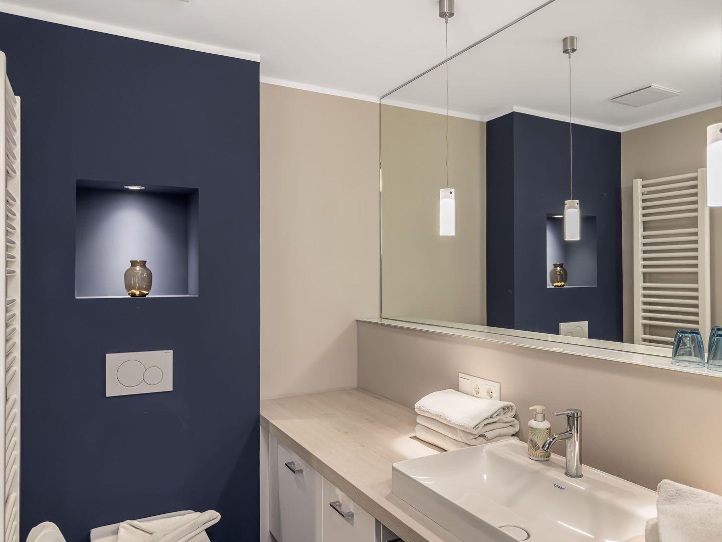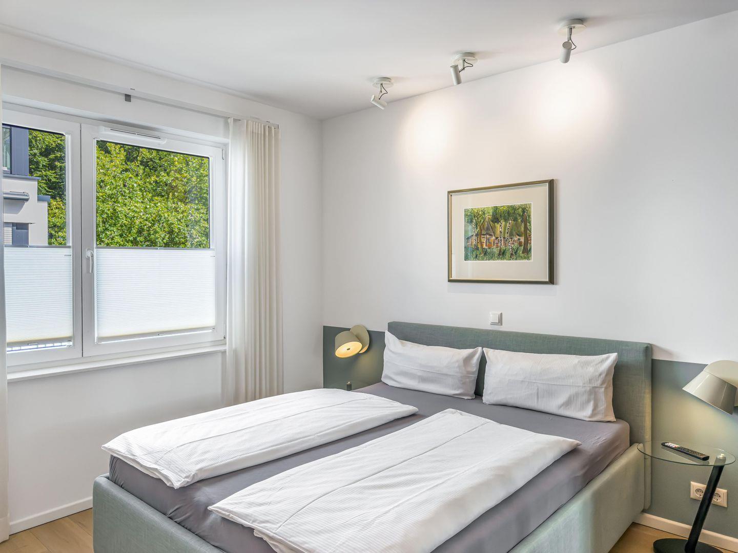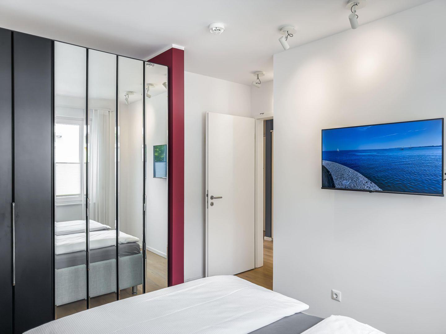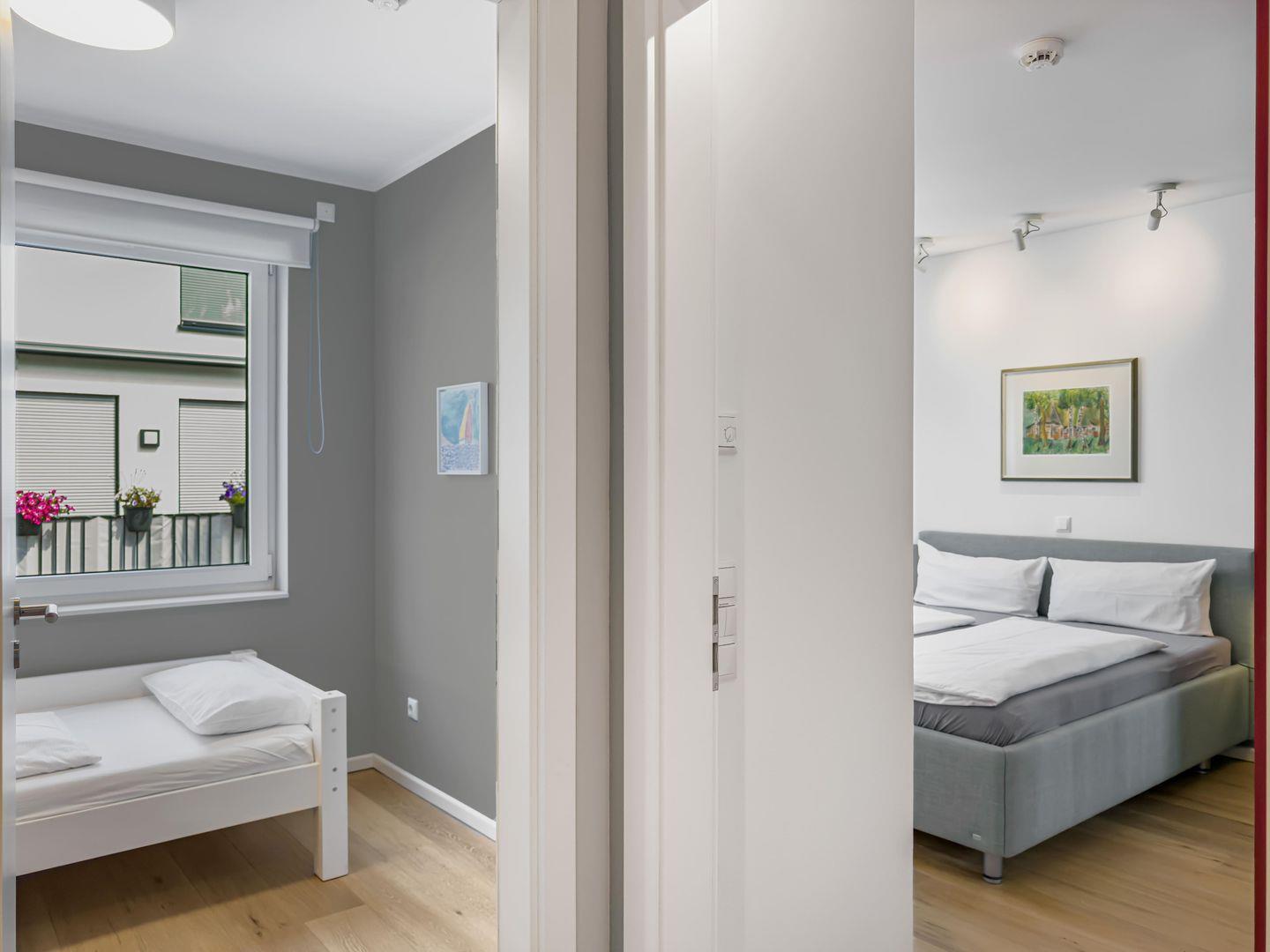 Dieses moderne, ruhig gelegene 3-Zimmer-Apartment im 1. Obergeschoss bietet auf ca. 64 m² alles für einen komfortablen Aufenthalt. Der großzügige Wohnbereich mit gemütlicher Couch und separatem Essplatz lädt zum Entspannen ein, und die hochwertige Einbauküche ist perfekt ausgestattet. Ein Highlight ist der Balkon – ideal für entspannte Stunden im Freien. Das Apartment verfügt über ein Schlafzimmer mit Doppelbett (1,60m), ein weiteres Schlafzimmer mit Etagenbett sowie ein Duschbad mit ebenerdiger Dusche. Für zusätzlichen Komfort sorgen WLAN, TV, Waschmaschine und Trockner im Keller sowie ein PKW-Stellplatz. Busanbindung, Einkaufsmöglichkeiten und der Strand sind bequem erreichbar.