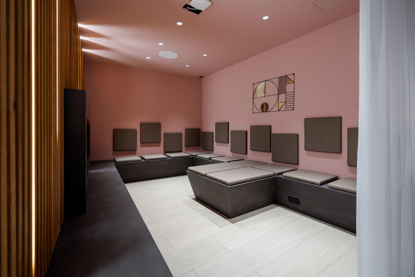Ein besonderes Highlight ist die großzügige Wellnesslandschaft: Finnische Sauna, Biosauna, Dampfbad, Fußbäder, Erlebnisduschen, Eisbrunnen sowie Ruhezonen mit Kamin laden zum Entspannen ein. Während der Öffnungszeiten steht Ihnen der Spa-Bereich kostenfrei zur Verfügung. Wer keinen Bademantel dabei hat, kann sich diesen ebenso wie Saunatücher bequem gegen eine geringe Gebühr leihen. Ein Aufzug verbindet den Wellnessbereich mit allen Etagen, sodass Sie bequem zu Ihrer Wohnung gelangen können.