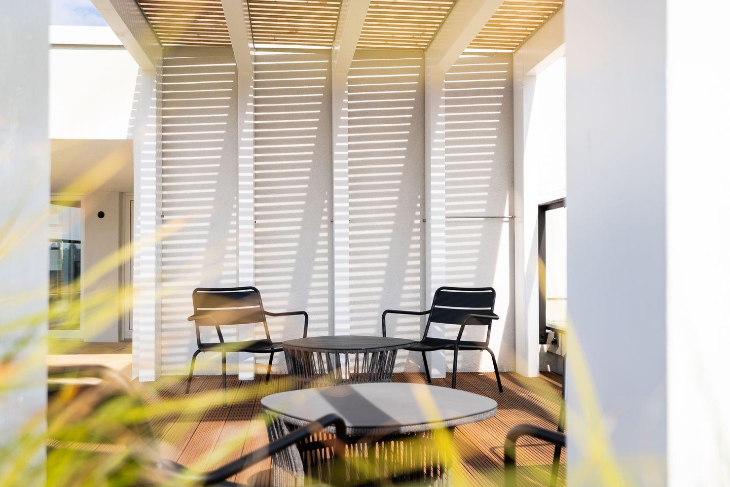 Auf dem Dach erwartet Sie zudem eine weitläufiges Sonnendeck mit komfortabler Möblierung – ideal zum Relaxen oder Sonnenbaden während der Saison. Für Fitnessbegeisterte gibt es im Gebäude außerdem den 1.000 m² großen Bodybalance Club (externer Anbieter), der Yoga- und Fitnesstraining auf Premium-Niveau bietet. Tages- oder Wochentickets sind direkt vor Ort erhältlich.