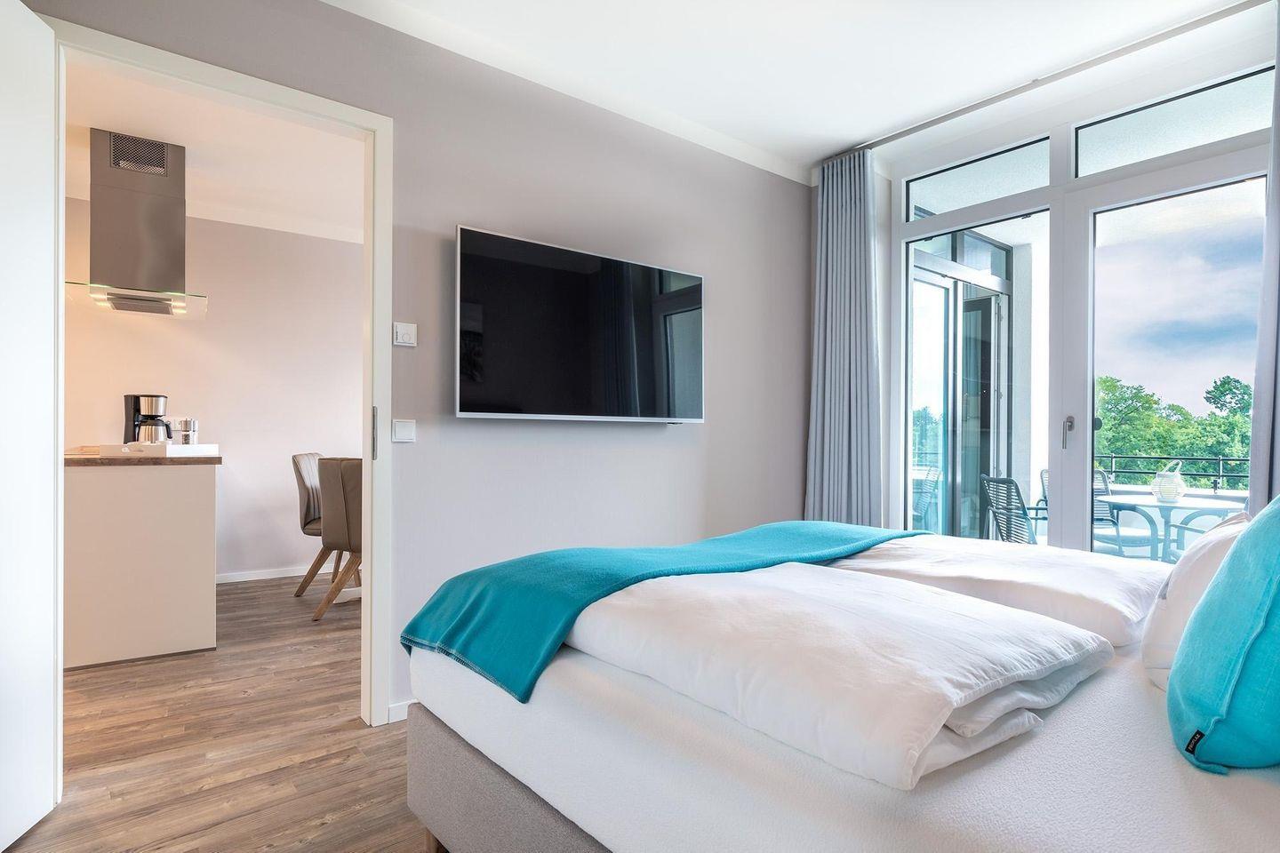 Das helle, moderne Nichtraucher-Apartment ist mit viel Liebe zum Detail eingerichtet und bietet höchsten Komfort. Fußbodenheizung sorgt für behagliche Wärme, während die sonnenschutzverglasten, teilweise bodentiefen Fenster für eine angenehme Lichtstimmung sorgen. Für Ihre digitale Vernetzung steht kostenfreies WLAN bereit.