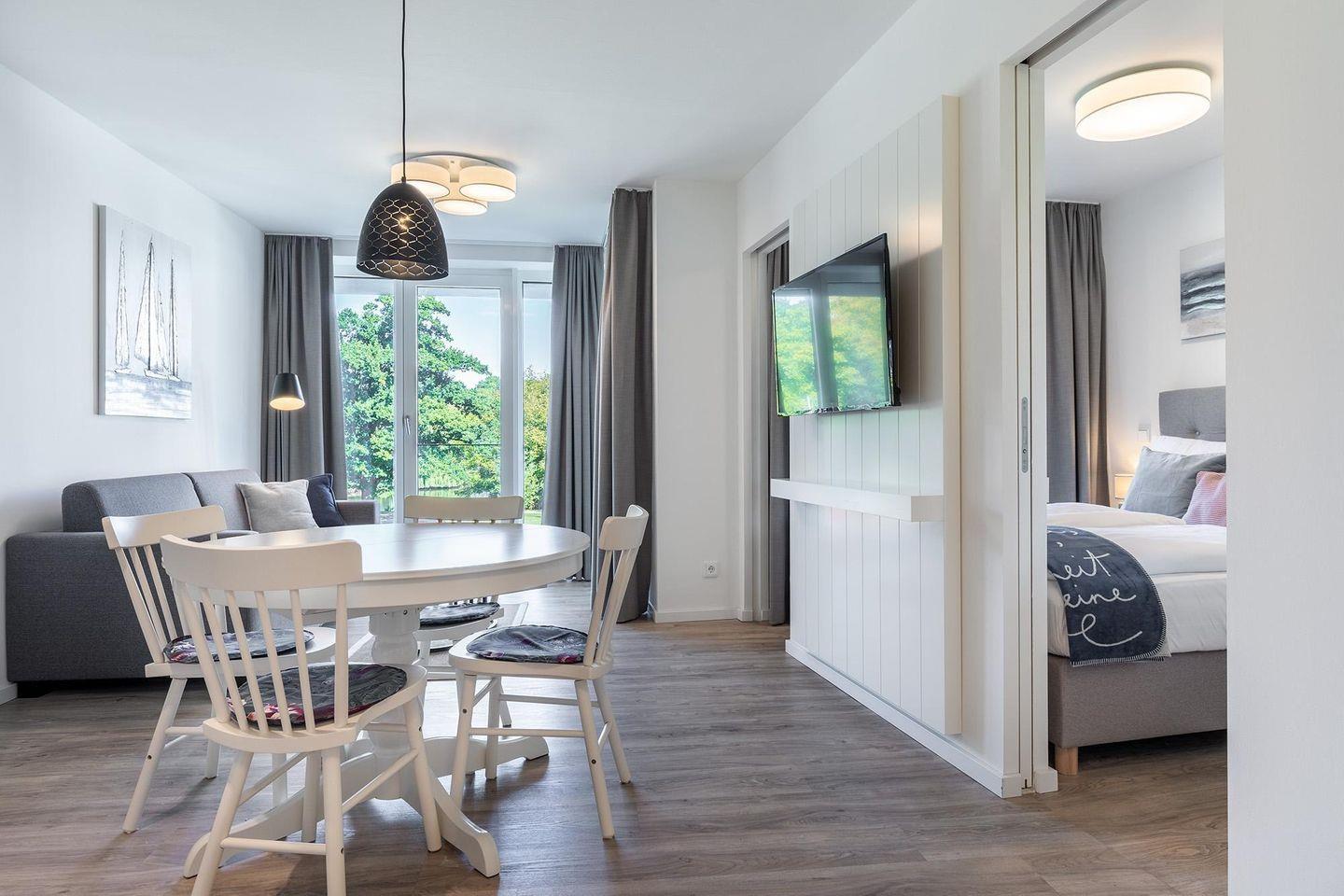 Dieses helle und moderne Studio-Apartment mit 40 m² Wohnfläche bietet Platz für bis zu vier Personen und ist der perfekte Rückzugsort für erholsame Tage an der Ostsee. Besonders beeindruckend ist die nach Osten ausgerichtete, überdachte Loggia, von der Sie einen wundervollen Blick auf den idyllischen Godewindpark genießen. Beginnen Sie Ihren Tag hier beim Frühstück mit den ersten Sonnenstrahlen und dem wohltuenden Meeresklima – ein wahrer Genuss für Körper und Geist.