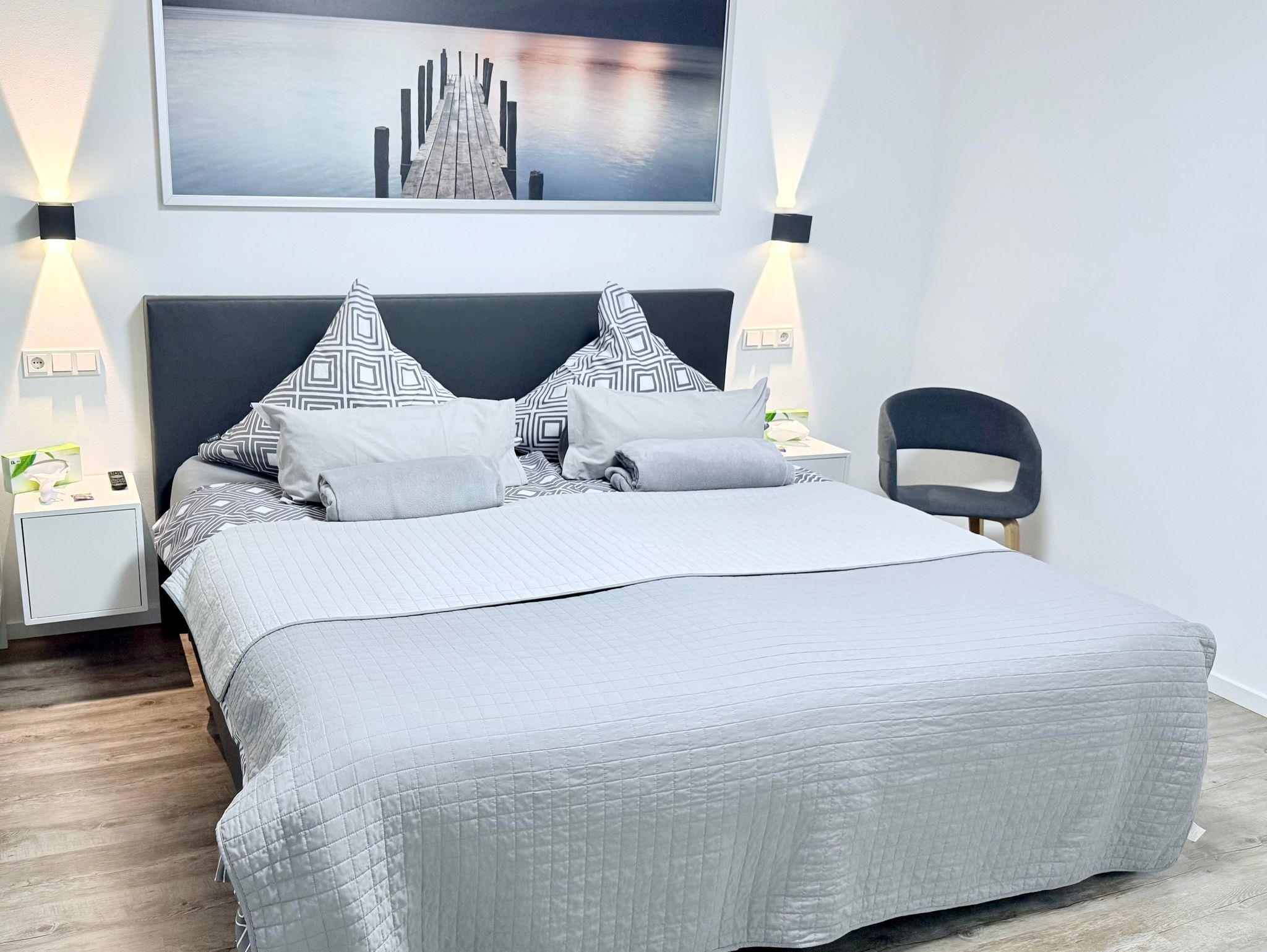 Freuen Sie sich auf einen Urlaub in unserer modernen Ferienwohnung. Sie wohnen im Neubau, sehr gut ausgestattet und vom DTV mit 5 Sternen ausgezeichnet. Die Unterkunft bietet Ihnen Barrierefreiheit im Erdgeschoss vom Privatparkplatz vor der eigenen Eingangstür, über die ebenerdige Regen-Dusche bis zur eigenen Terrasse und ist daher ideal geeignet für Familien mit Baby, für Kinder, aber auch für Senioren oder für Menschen mit Gehbehinderung und vor allem für Hunde.