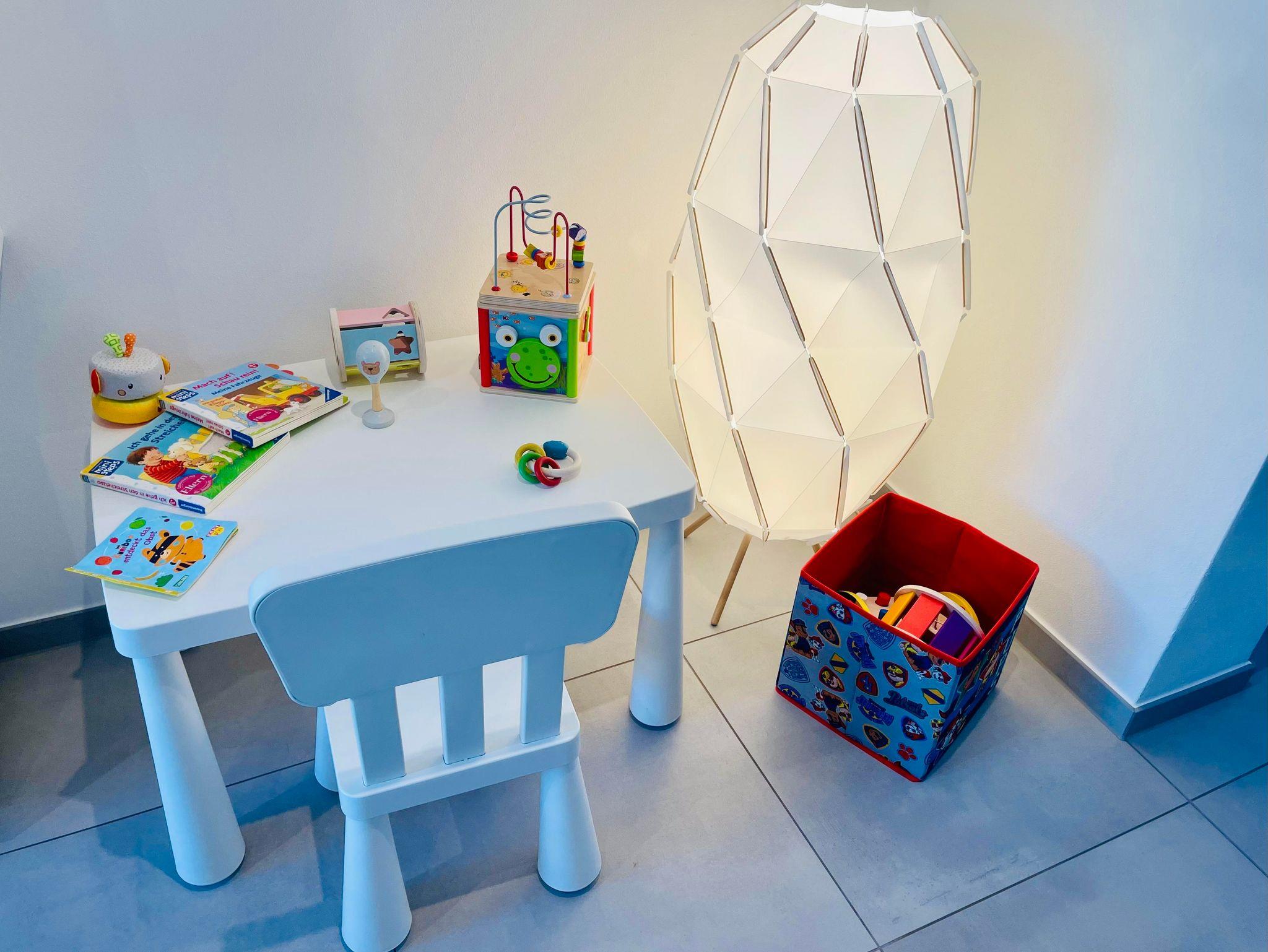 Die Ausstattung nennen wir Premium-Komfort. Es gibt eine sprechende original Physiotherm Sauna für 2 Personen mit Infrarotwärme, eine große, hoch eingezäunte Sonnenterrasse mit Grill, eine Wallbox, eine Regendusche, einen Massagesessel und Bücher sowie Kinderspielzeug uvm.