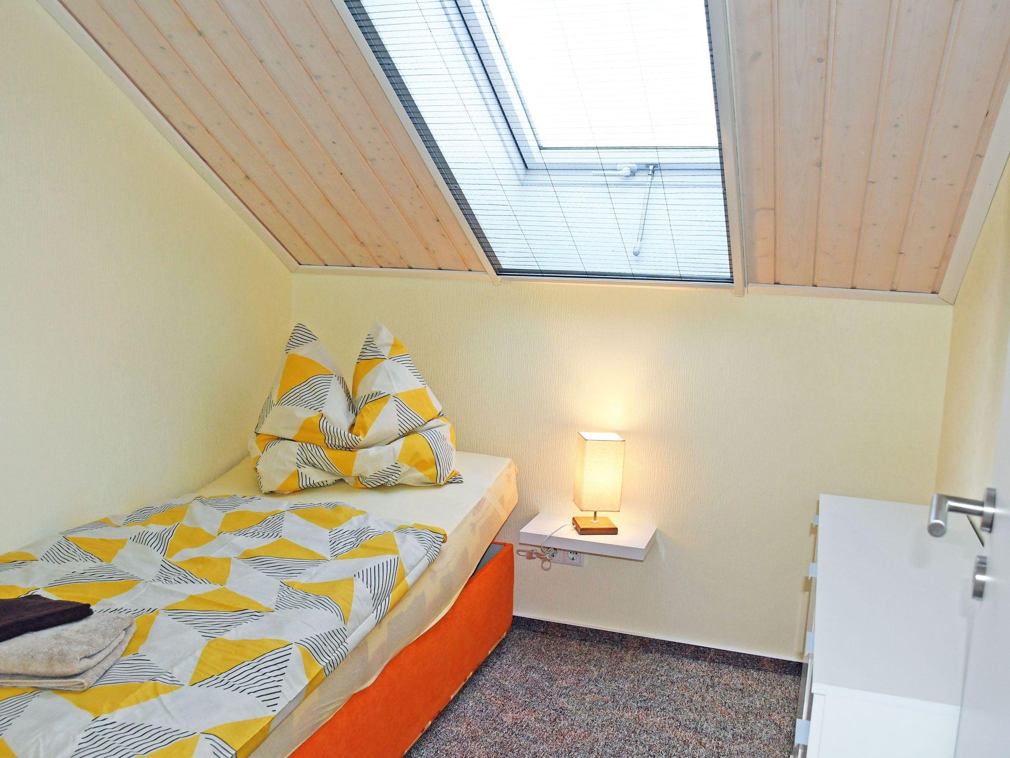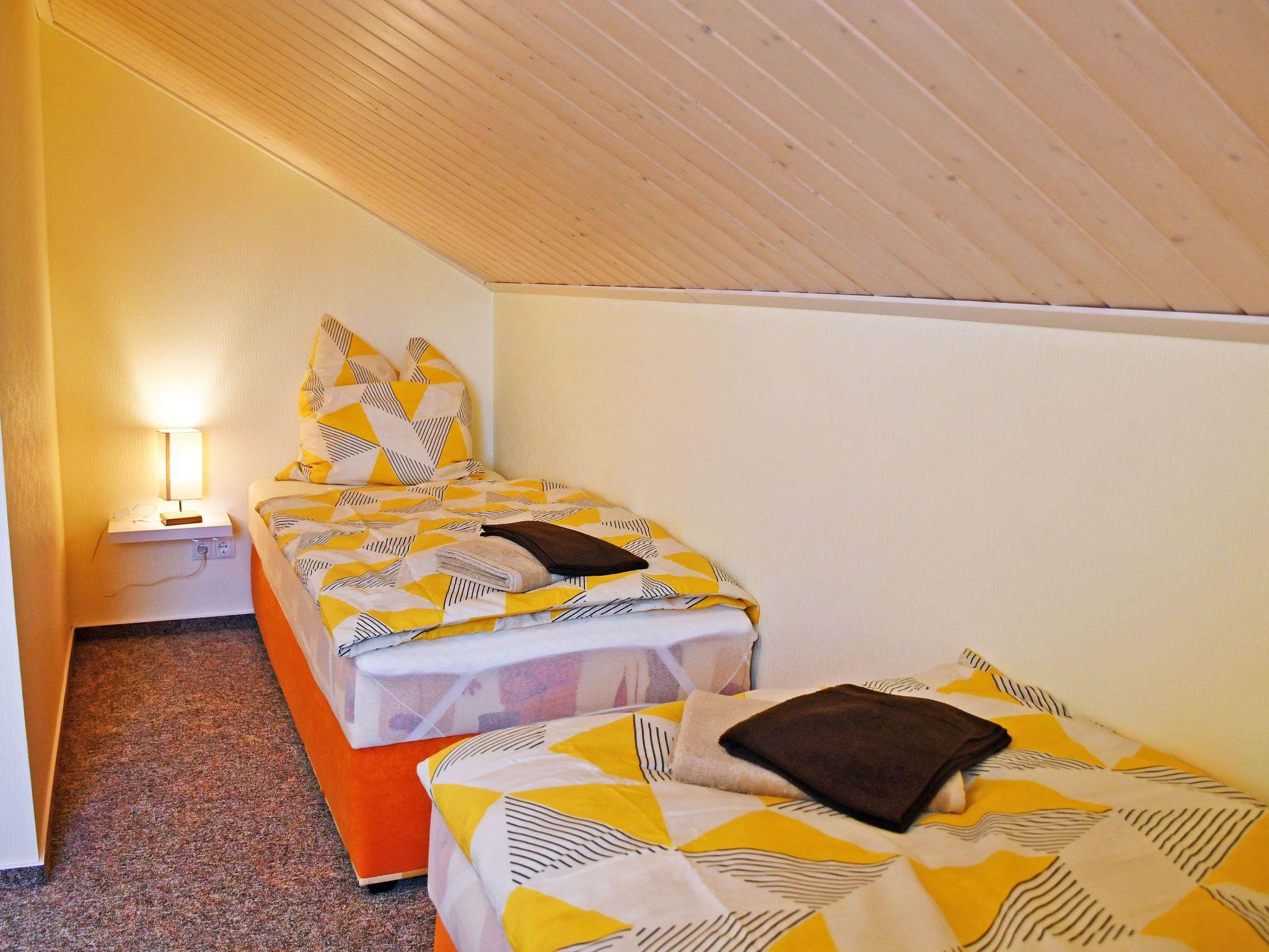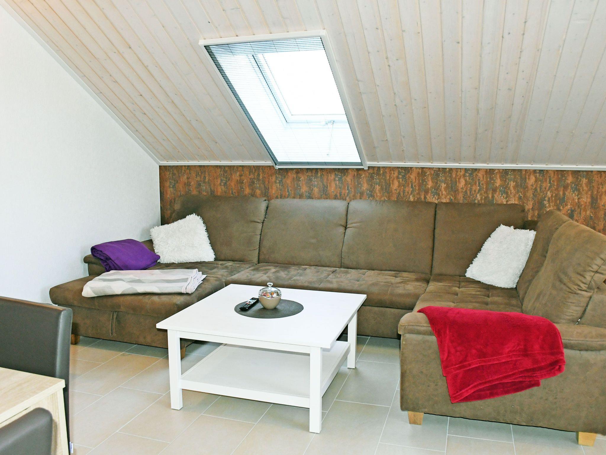 Die Ferienwohnung (60 qm, max. 5 Erwachsene und 1 Kind bis 3 Jahre im Kinderreisebett, Wohnzimmer mit Küchenzeile, 3 Schlafzimmer, Bad/Dusche, Terrasse, WLAN) befindet sich im Obergeschoss eines Wohnhaus. Sie ist über eine Außentreppe erreichbar. Zur Ferienwohnung gehört auch eine schöne Balkonterrasse mit Gartenmöbeln und Grillmöglichkeit.