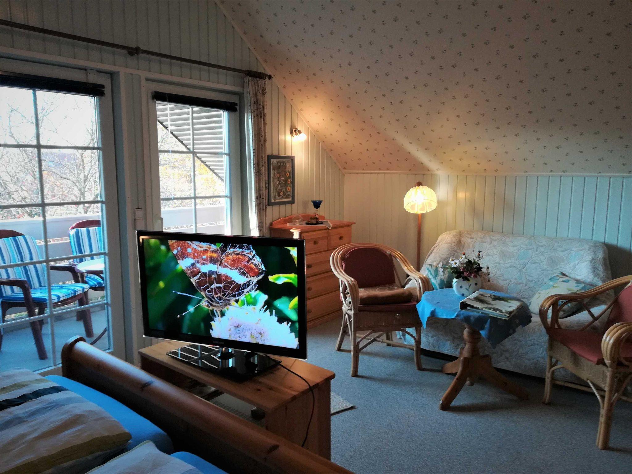 Es ist eine liebevoll gestaltete 3 Sterne Oberwohnung in familiärer Atmosphäre. Große Räume mit schönem Ambient Die 80 qm große Wohnung besteht aus vier Zimmern, Küche und Bad mit hochwertiger Ausstattung und bietet Platz für 1 bis 5 Personen, zusätzlich 1 Kinderbett. Haupt-Schlaffzimmer mit Doppelbett 2x2m.