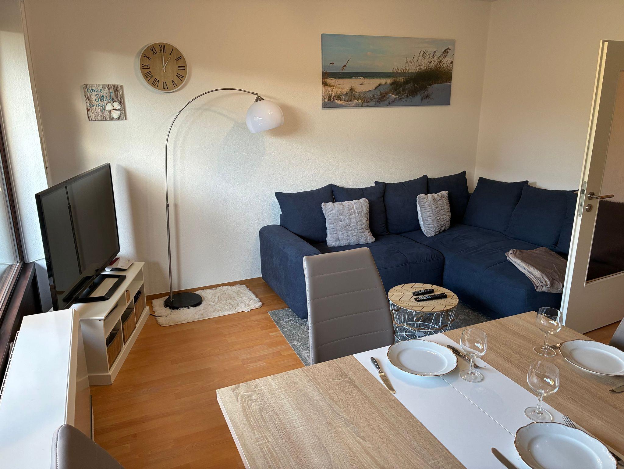 Helle 2,5-Zimmer-Wohnung mit neuwertiger, offener Küche; Spülmaschine vorhanden. Schlafzimmer mit komfortablem Boxspringbett sowie ein separates Zimmer mit Schlafsofa. Das kompakte Bad mit Dusche macht die Wohnung ideal für 2?3 Personen. Garten, Garage für Fahrräder und Parkplatz inklusive.