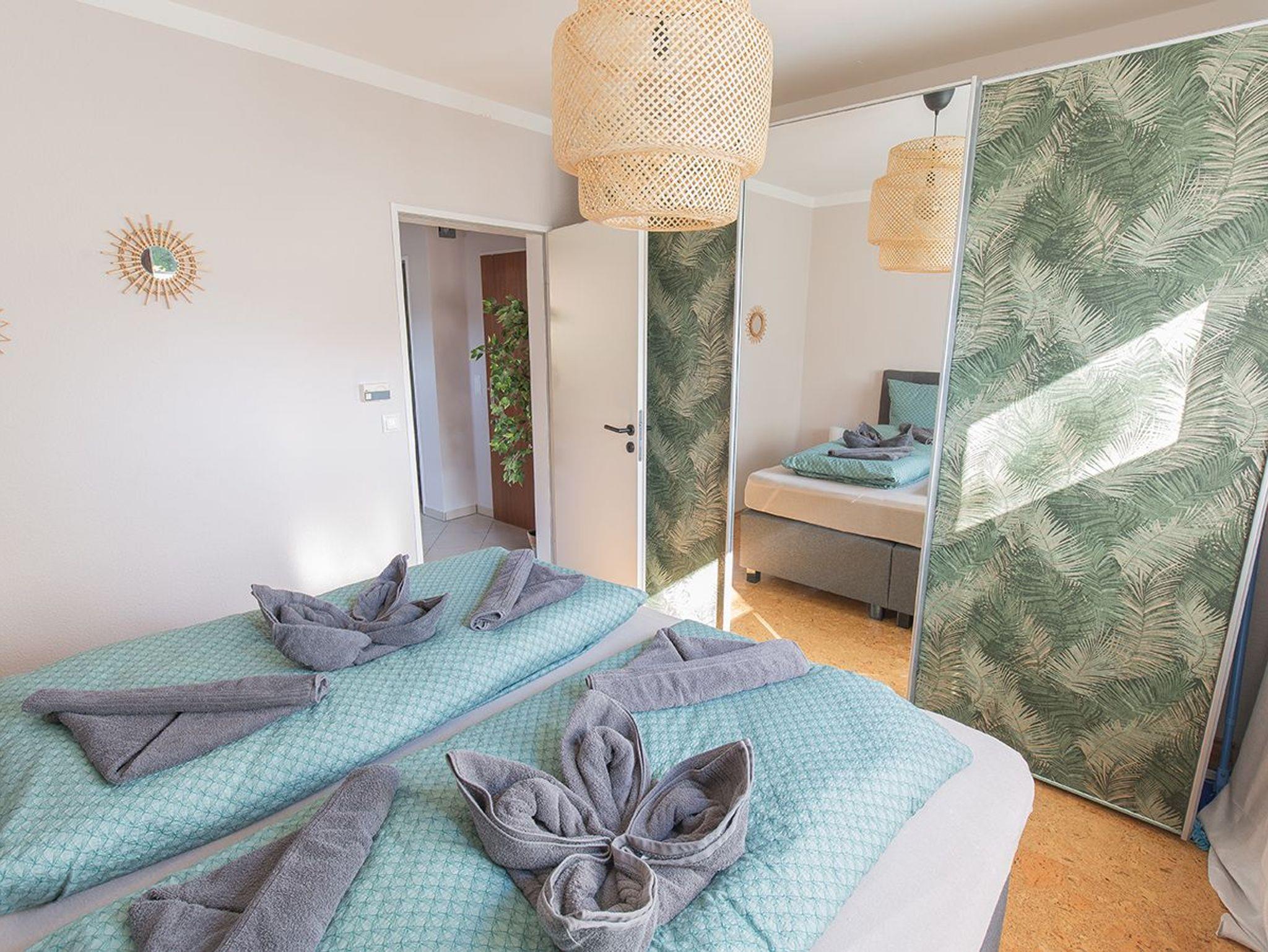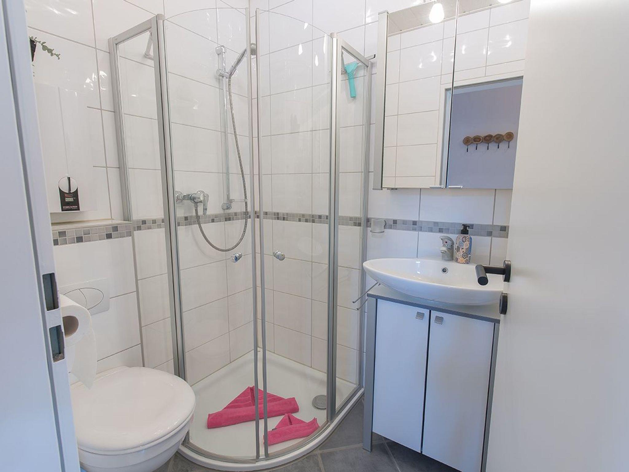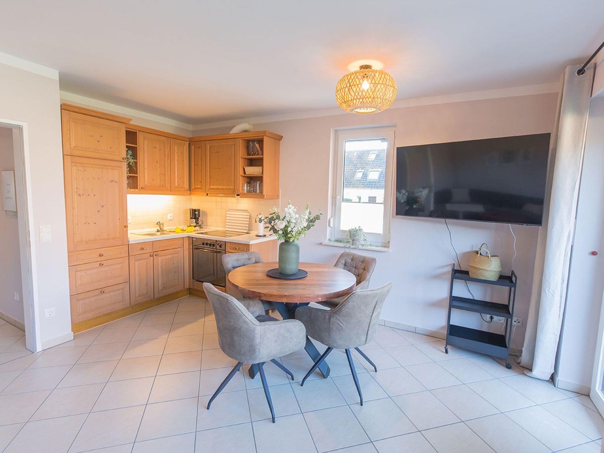 Moin Moin in unserer EG-Wohnung Fenja. Hier verbringen Sie ihren Urlaub strandnah und sehr ruhig in einer reinen Wohnstraße. Durch den großzügigen Flurbereich gelangen Sie ins Wohn/Esszimmer mit L-Küche und gemütlichem Ottomanen-Sofa mit Blick auf den wandhängenden Fernseher. Hier ist der Ausgang zur sichtgeschützten begrünten Terrasse mit Mobiliar und Steingrill. Hier genießen Sie die frische friesische Luft. Die Wohnung hat zwei Schlafräume - der erste ist ausgestattet mit Boxspringdoppelbett und großem Kleiderschrank, der zweite bietet ein Etagenbett. Auch hier ist noch genügend Platz zum Spielen. Das freundliche helle Duschbad hat einen geräumigen Waschplatz und einen ebenerdigen Duscheinstieg.
