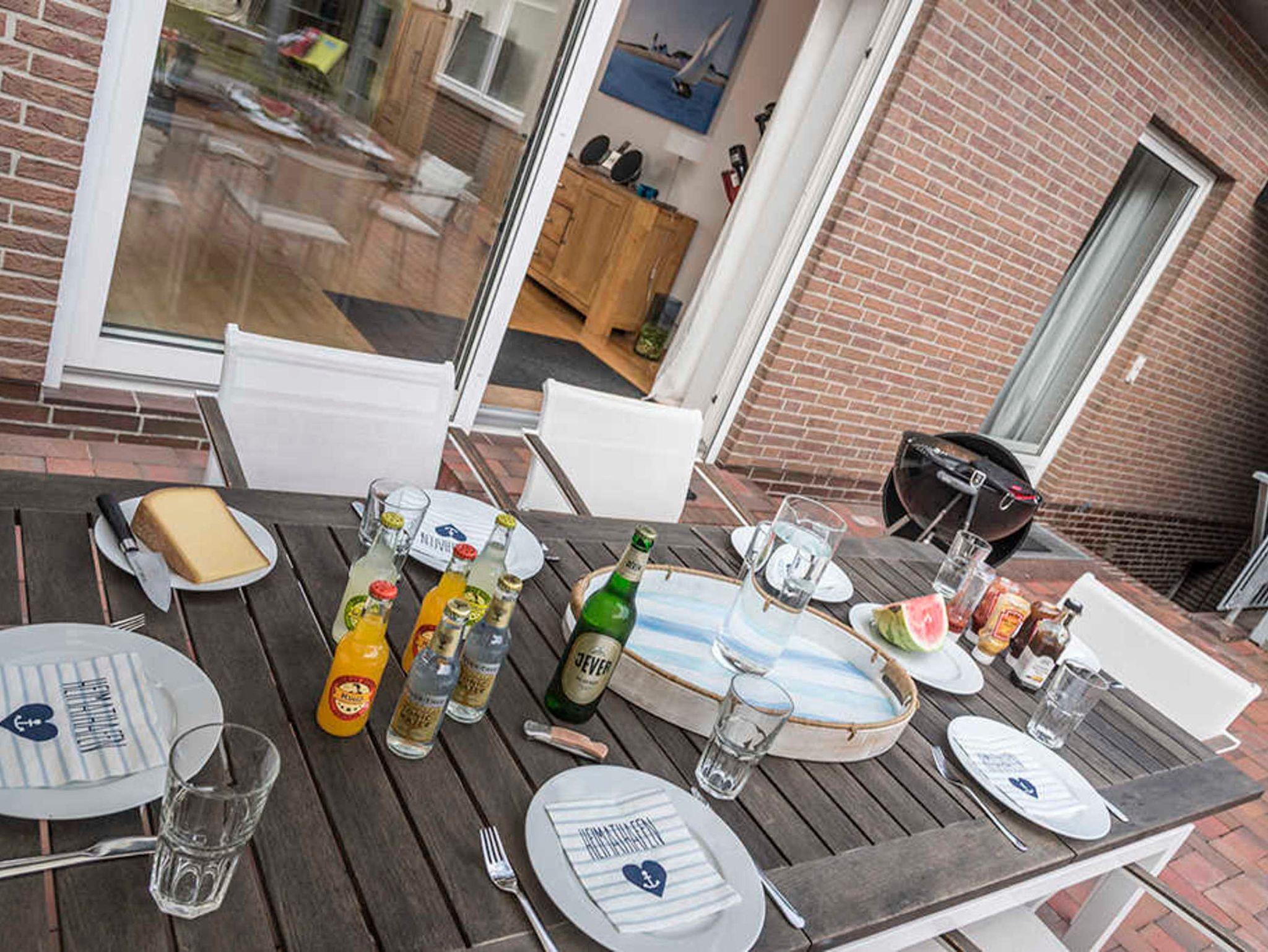Im großzügigen Wohnzimmer mit Kamin kann man sich treffen, Tee trinken oder zusammen essen am großen Tisch für 12 Personen. In der geräumigen Küche mit Stehtisch lässt sich hervorragend zusammen kochen oder einfach schnacken. Auf der Terrasse, im Garten oder in der sog. „Lounge“ geht am gemeinsamen Grillen fast kein Weg vorbei. Die Kinder können jederzeit raus in den großen, eingewachsenen Garten.