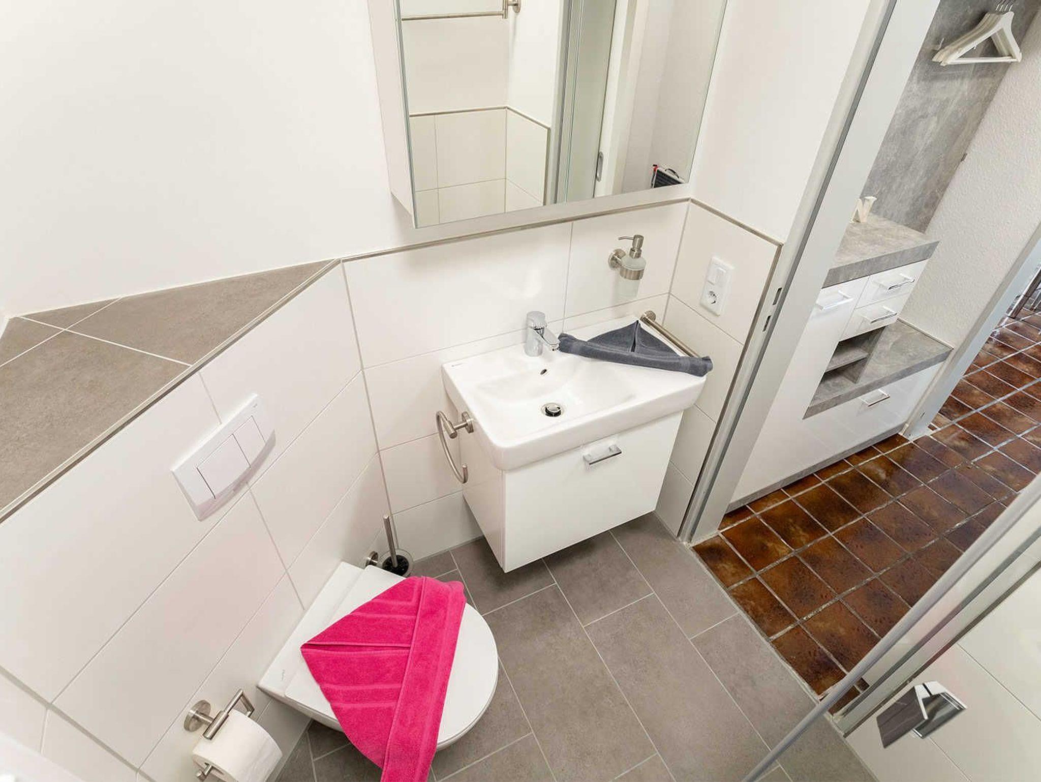 Sie betreten diese freundliche Ferienwohnung in der Schmidt-Rottluff-Str. 21 im Erdgeschoss durch eine geräumige Diele. Links gelegen das Duschbad und rechts die helle Küchenzeile mit kompletter Ausstattung sowie dem vorgelagerter Essplatz. Der durch Trennwand abgeteilte Doppelschlafraum bietet ein bequemes Doppelbett mit Kleiderschrank und großem Spiegel. Die Verdunklung erfolgt durch eine Außenjalousie. Entspannen Sie auf der 15 qm großen Terrasse der Ferienwohnung und genießen Sie die Deichnähe. Die Terrasse ist links und rechts durch Mauerwände abgetrennt - also nicht komplett umzäunt.