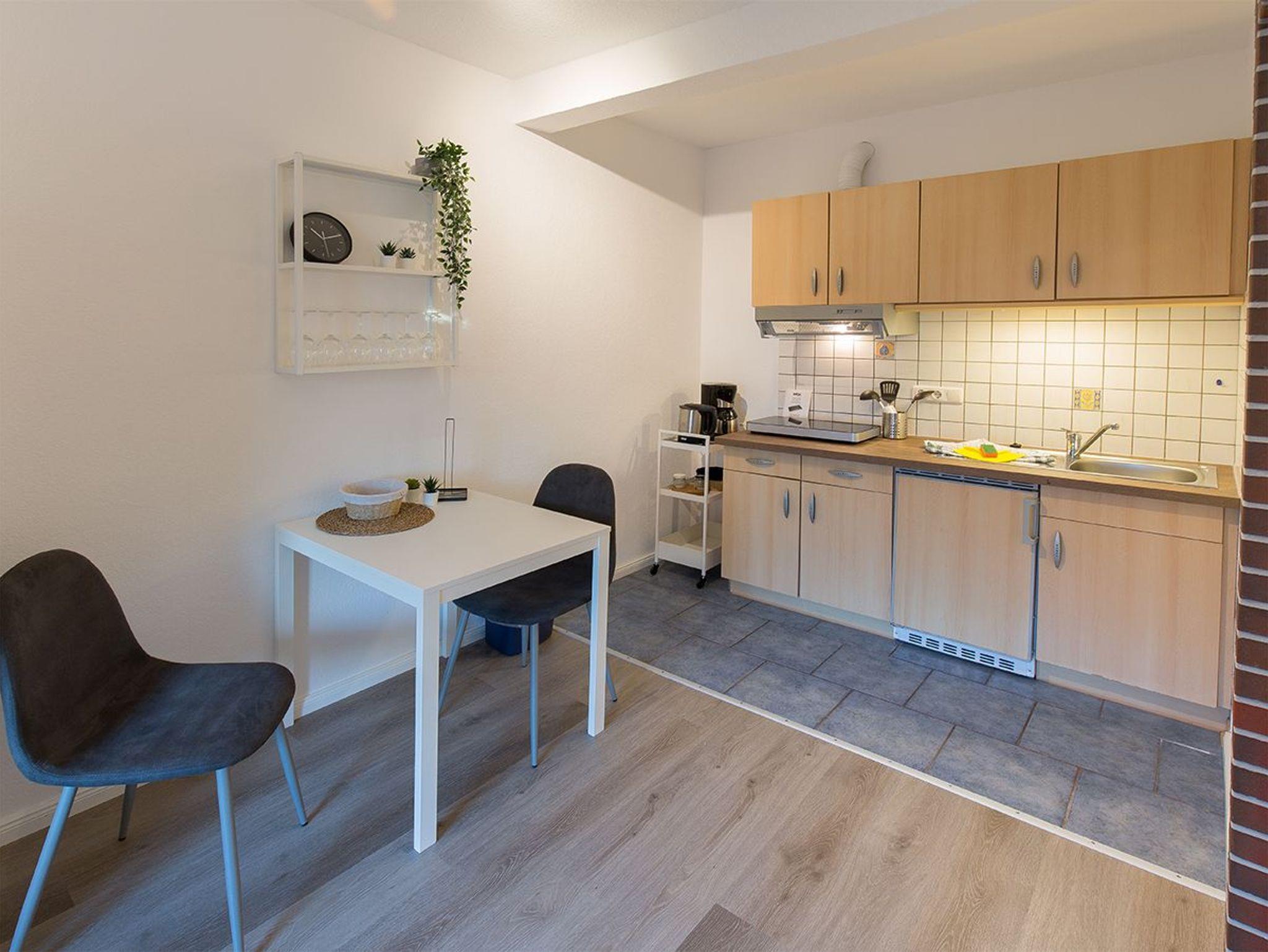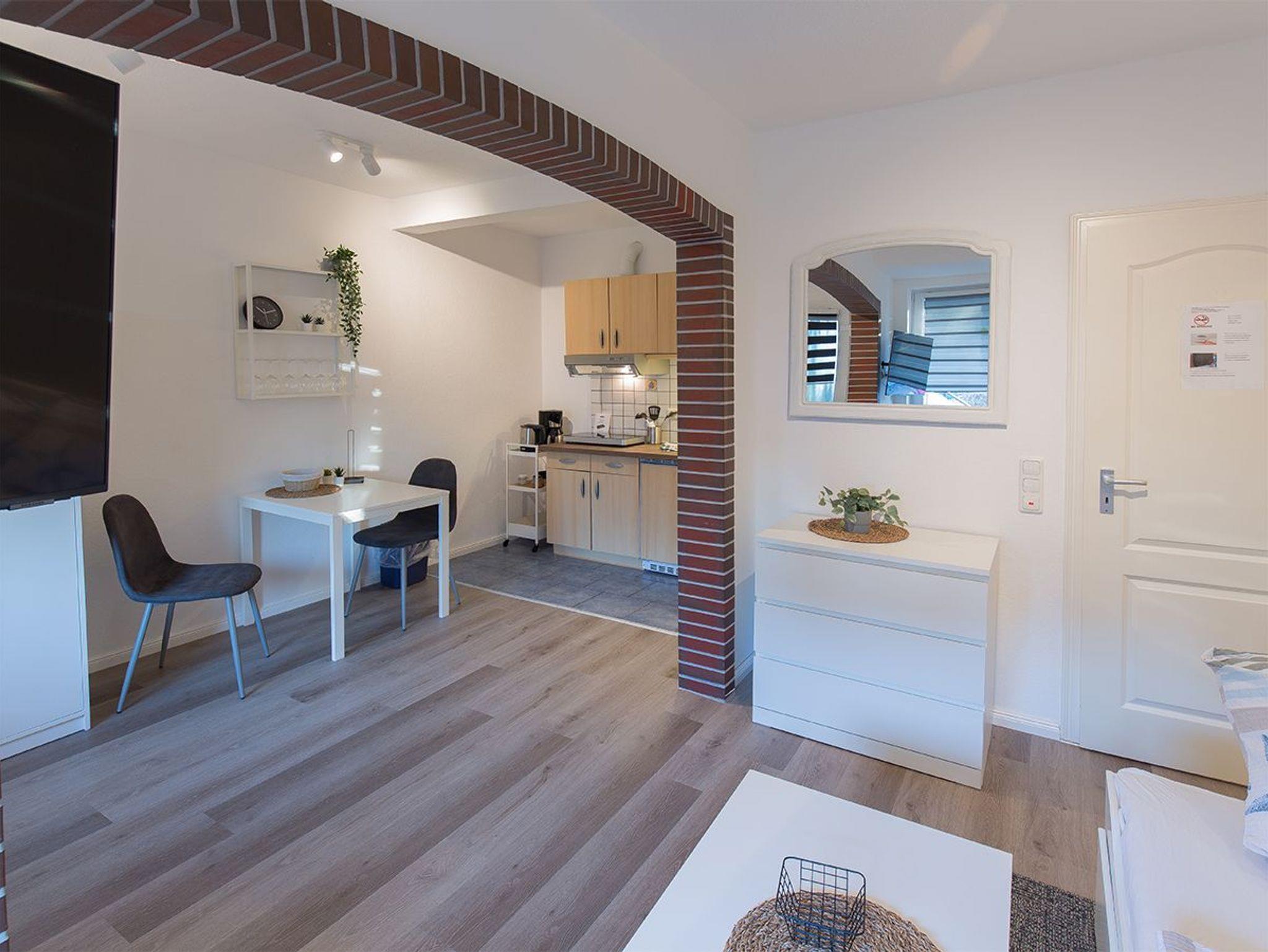 Geräumiges Apartment für zwei Personen im Herzen von Dangast in der Sielstraße. Sie biegen hinter dem Franz-Radziwill-Haus rechts ab und fahren noch ein paar Meter einen Weg lang, der Sie zur ruhig gelegenen und gut sichtgeschützten Apartmentanlage führt. Noch fünf weitere kleine Apartments und ein großer Loft stehen zur Vermietung in dieser Ferienanlage bereit - Ausgestattet mit Doppelbett, Dusche/WC, Sitzbereich und einer gut ausgestatteten kleinen, aber feinen Küchenzeile. Draußen stehen für alle sechs kleinen Wohneinheiten eigene Terrassen zur Verfügung sowie Parkplatz, Außengrill und Fahrradständer.