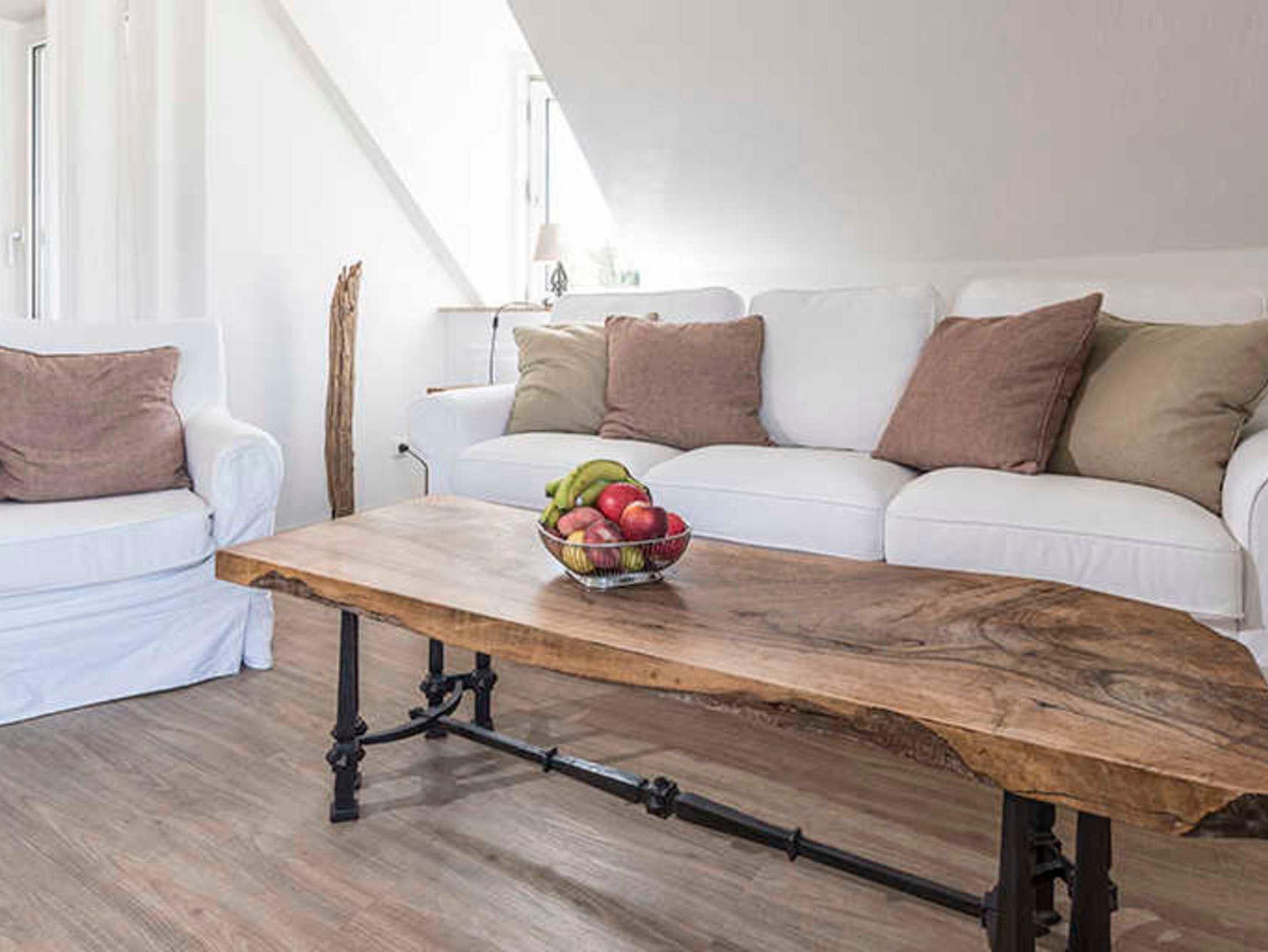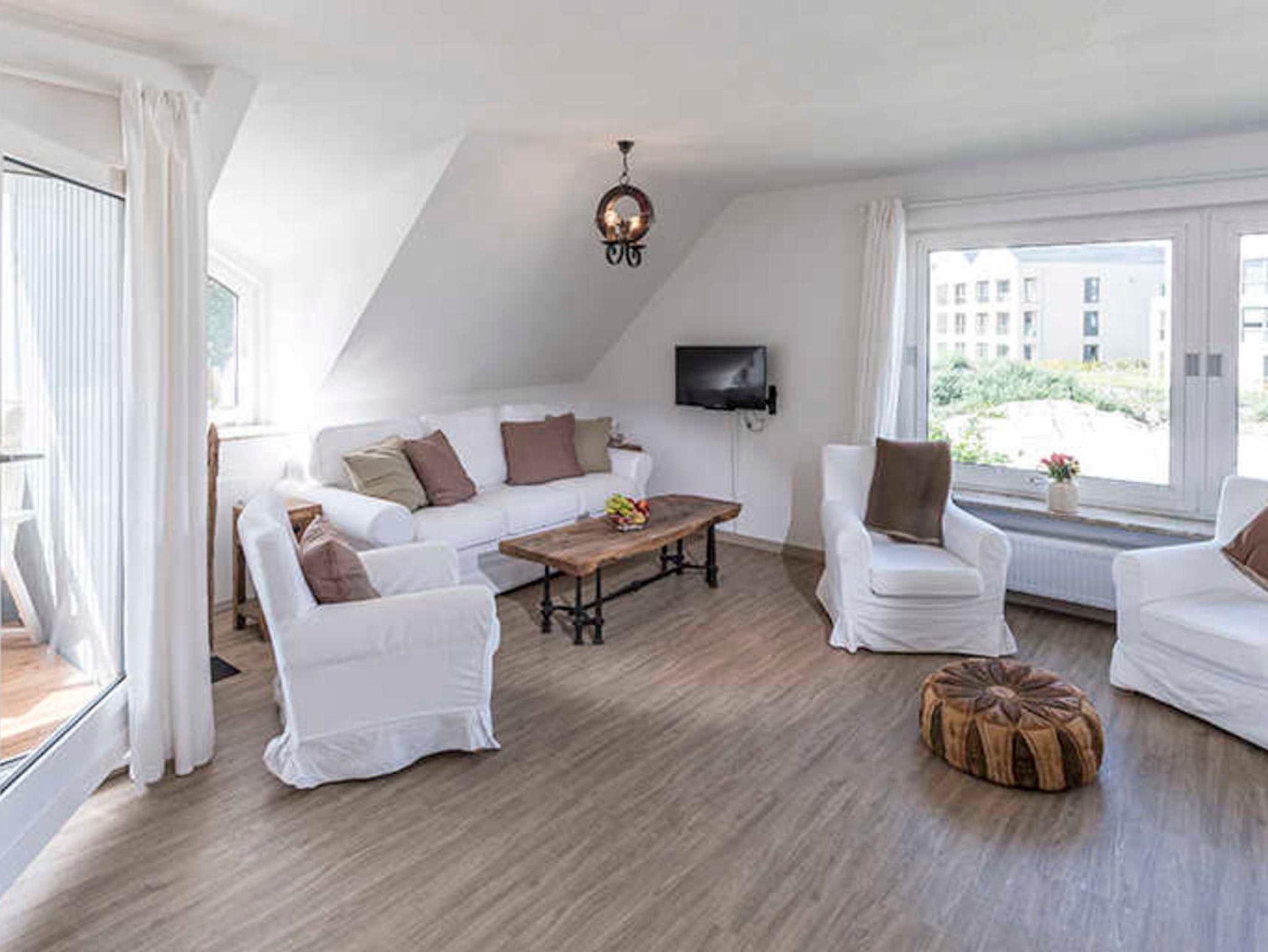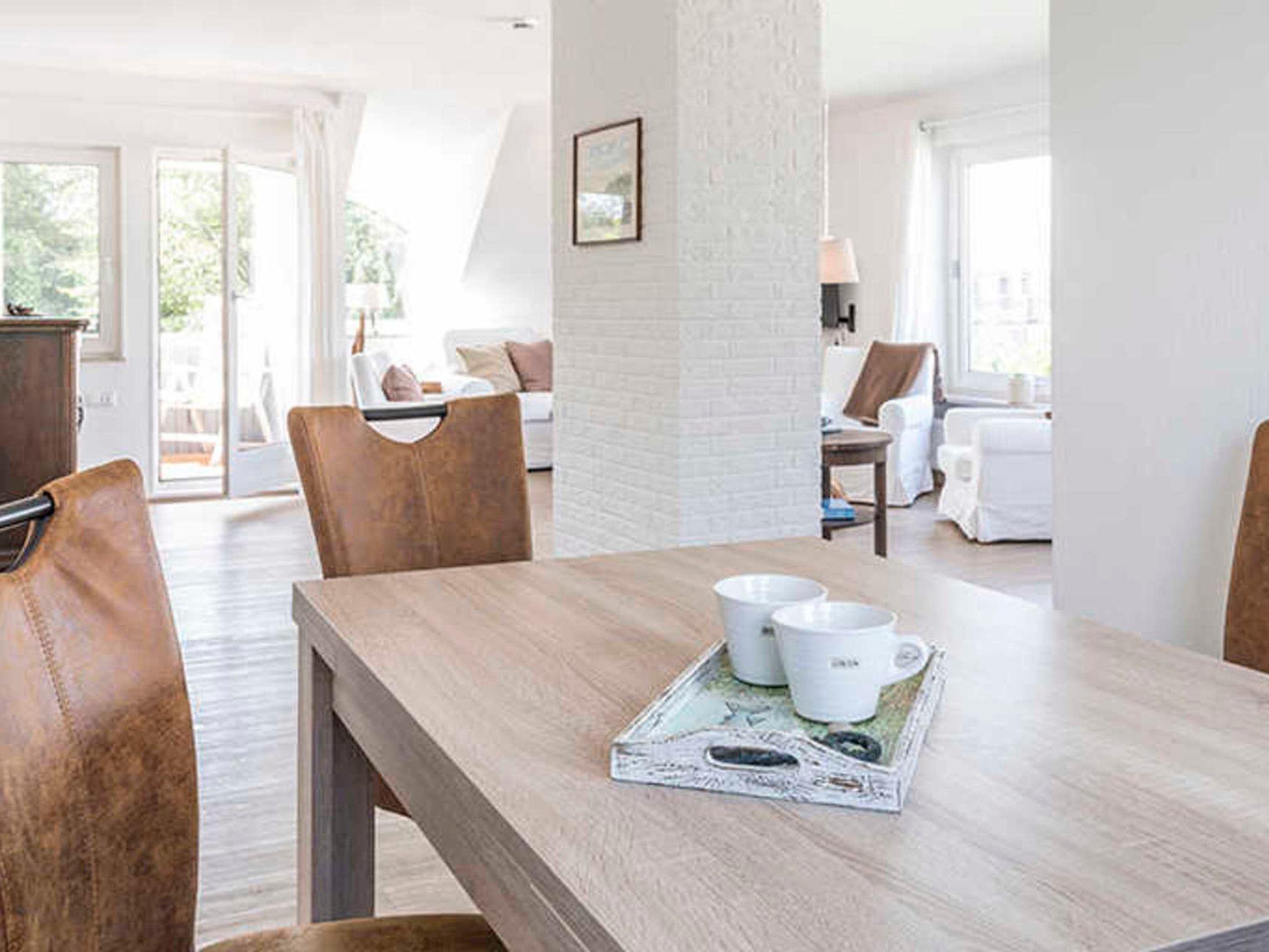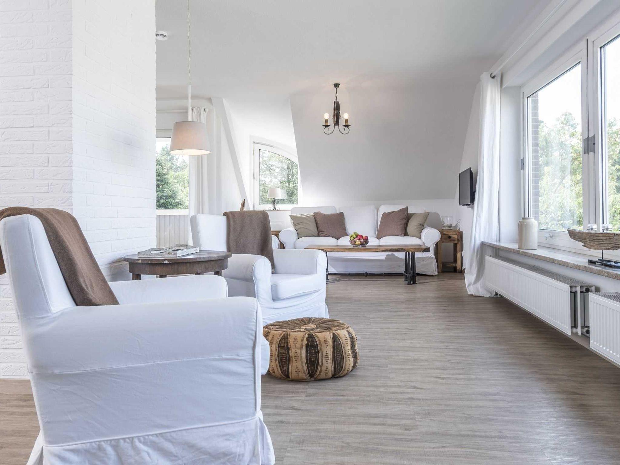 Das große Wohnzimmer ist lichtdurchflutet und bietet mit Essecke und Sitzecke (mit TV) viel Platz für jeden einzelnen. Die schöne Küchenzeile ist gut ausgestattet bis hin zu Nespresso-Maschine und Milchschäumer. Das helle, komfortable Bad mit Dusche und WC bietet wirklich viel Platz. Und im separaten Schlafzimmer, dessen Fenster auf den ruhigen Garten hinausgehen, kann man erholsam Schlafen. All das zusammen macht Ihren Aufenthalt angenehm und unkompliziert. Zu zweit ist das Platzangebot geradezu luxuriös, Sie können hier aber auch gut zu dritt oder viert Ihren Urlaub verbringen.