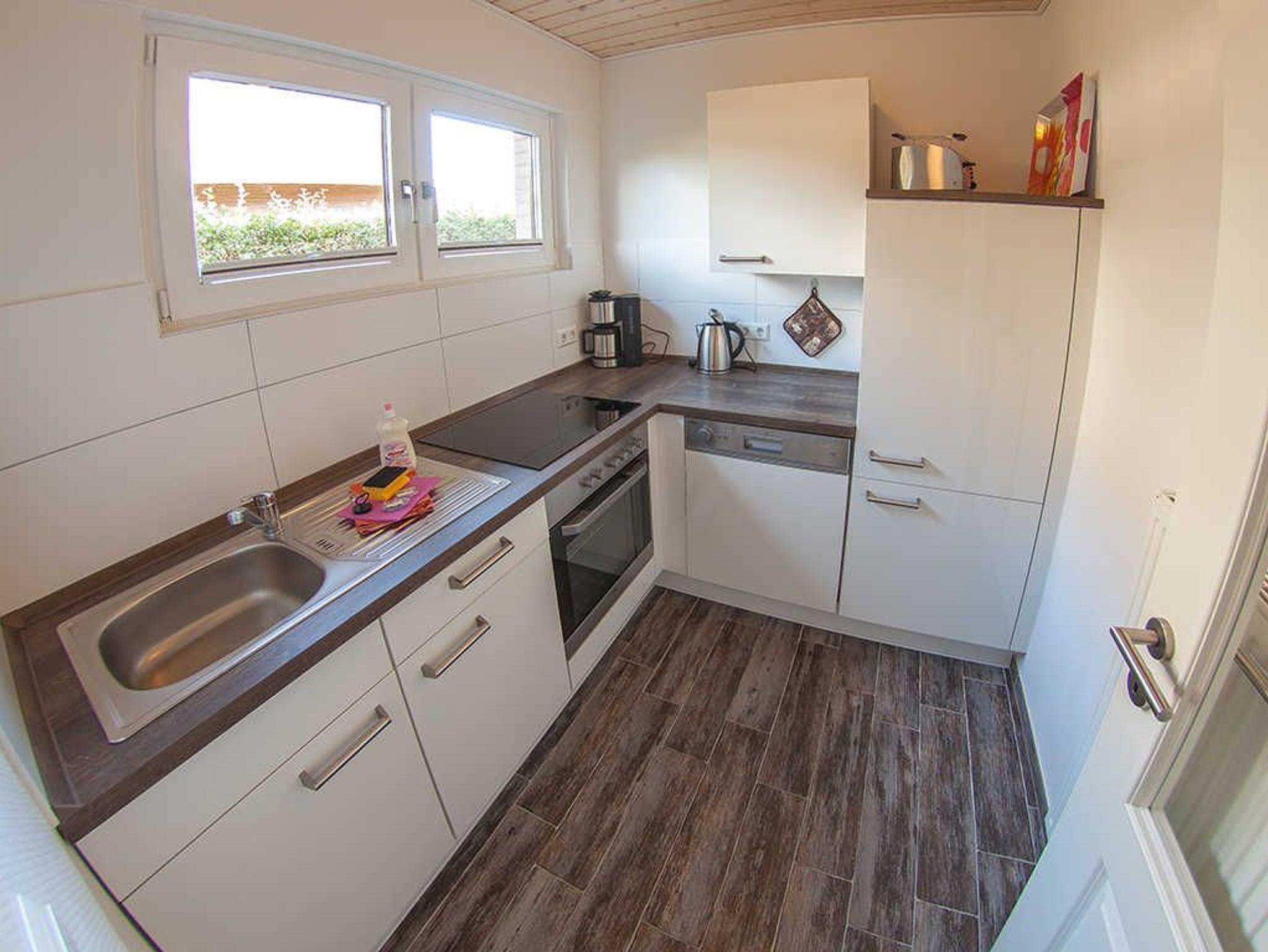 Im freundlichen Flurbereich befindet sich der Eingang zur separaten Küche mit kompletter Ausstattung für ein entspanntes Kochen. Nebenan der Hauswirtschaftsraum mit Trockner und Waschmaschine. Weiter geht es zum hellen Wohn-/Essbereich mit Ausgang zur begrünten Terrasse mit Mobiliar und Sonnenschirm. Im Wohnbereich mit Flachbild-SAT-TV können Sie auf der bequemen Ledereckcouch herrlich entspannen. Im ersten OG befinden sich die beiden Schlafräume mit einem Doppelbett und zwei Einzelbetten sowie das moderne Duschbad. Im Doppelschlafraum bieten wir einen weiteren Fernseher.