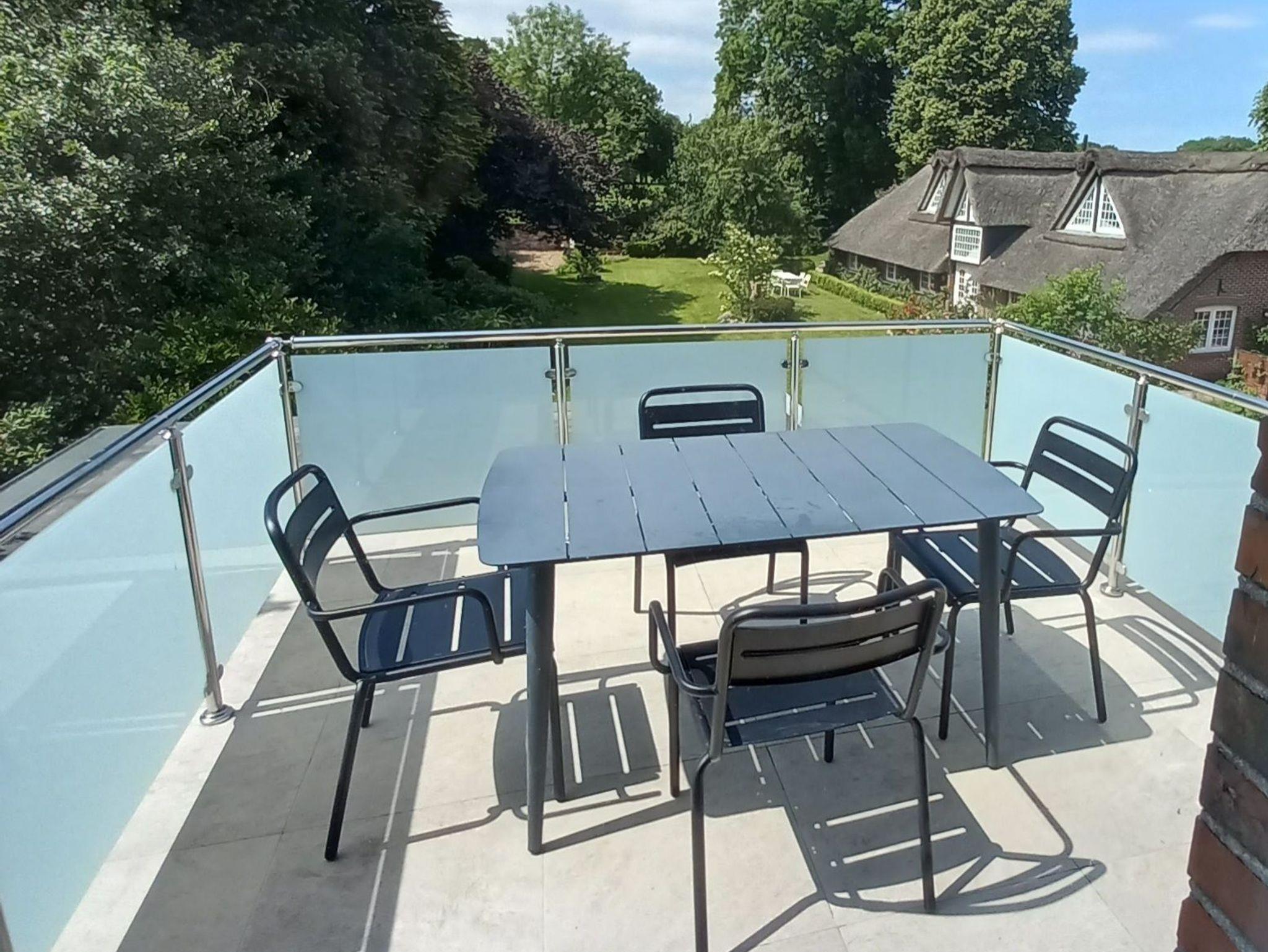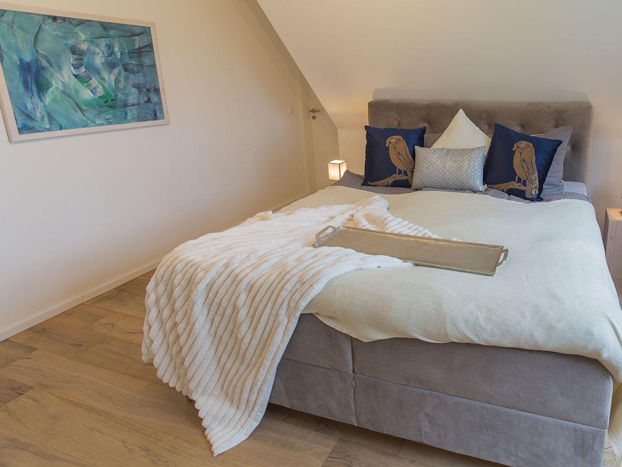 Willkommen in unserer Ferienwohnung Fresenhuus 2 im ersten OG links, Teil der Ferienwohnanlage achtteihn in der Oldeoogstraße. Sie surfen mit Highspeed-Internet; im gesamten Objekt wurde Echtholz-Eichenparkett verlegt Das Bad ist ausgestattet mit Fußbodenheizung und ebenerdiger Walk-In-Regendusche. Hier urlauben bis zu drei Personen und Kleinkind in frischer friesischer Luft. Ein langer heller Flur führt zunächst direkt links in das Schlafzimmer mit Einzelbett und dahinter zum Schlafzimmer mit Doppelbett. Beide Schlafräume sind mit einer Tür verbunden. Ab Diele geht es auch ins moderne Duschbad. Sie gelangen weiter zum großen Raum für die Bereiche Wohnen/Kochen/Essen. Rechts die offene Küche mit vorgelagertem Essplatz und weitere 2 Sitzgelegenheiten an einer Küchentheke direkt vor dem Balkonausgang. Links das bequeme Ottomanen-Sofa mit Schlaffunktion. Der große Balkon bietet einen schönen Rundumblick auf achtteihn, Felder und Wiesen.