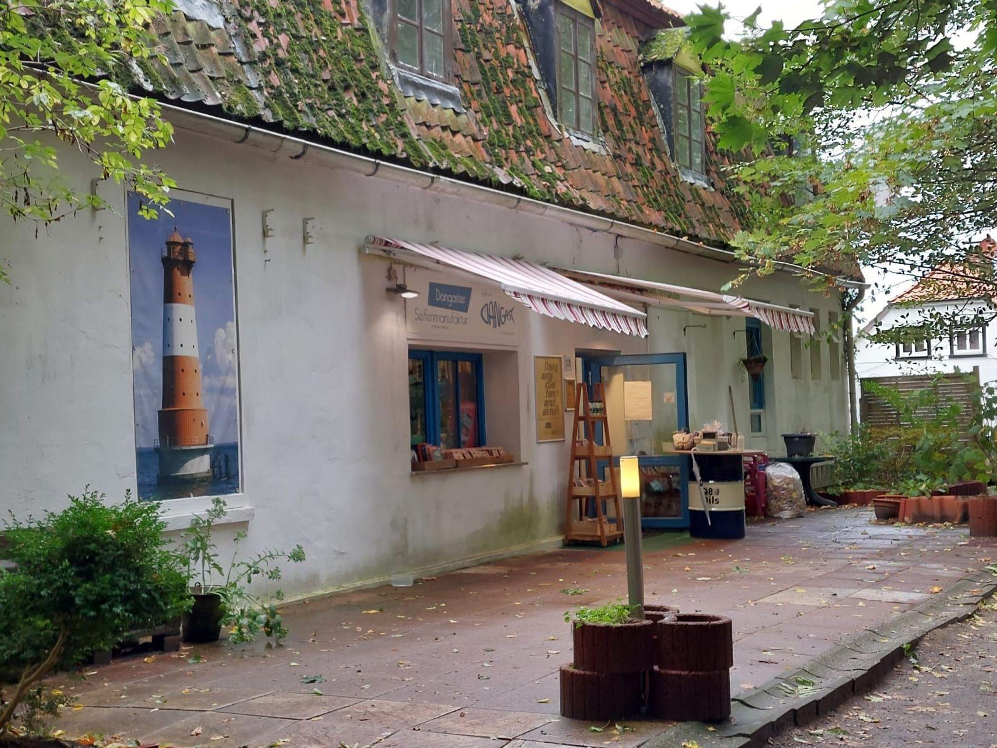 Vom Wohnzimmer aus hat man Zugang zur geräumigen, überdachten Terrasse und zu dem mit einer Hecke eingefriedeten Rasen. Von hier kann man bis zum Deich blicken. Für sonnige Tage stehen ein Sonnenschirm sowie eine Sitzgarnitur mit Auflagen bereit.