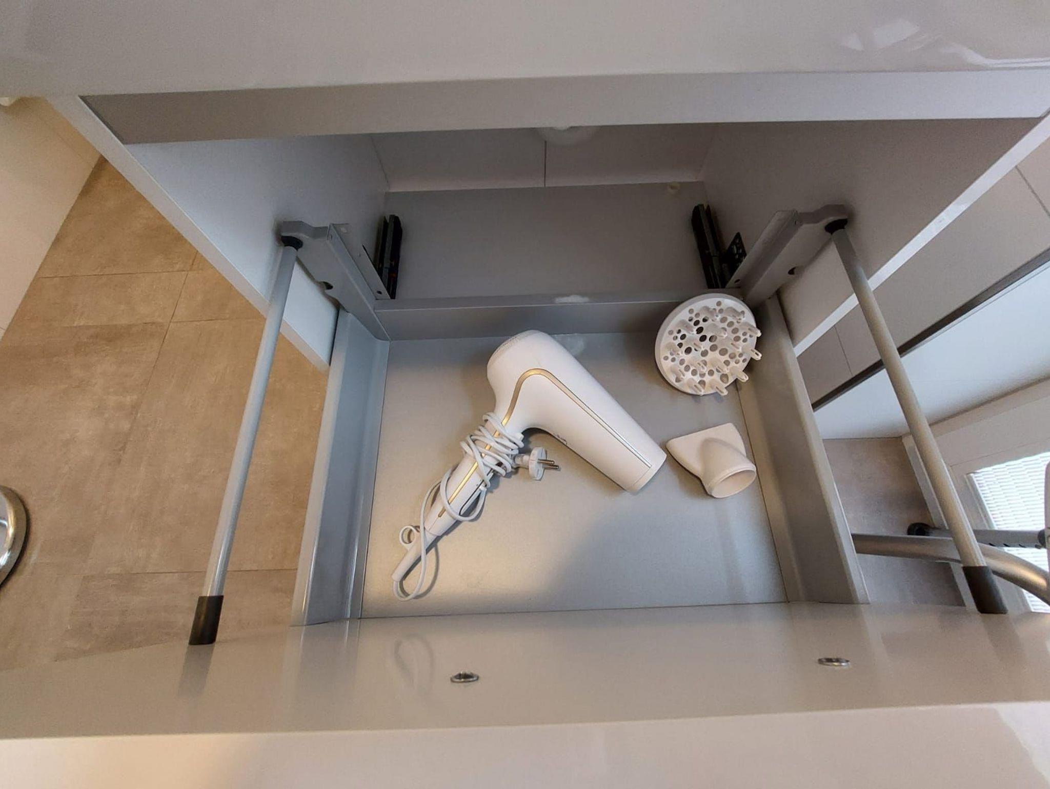Mit der vorhandenen Handtuchheizung können jederzeit Hand-/Duschtücher oder auch Kleidung getrocknet werden.