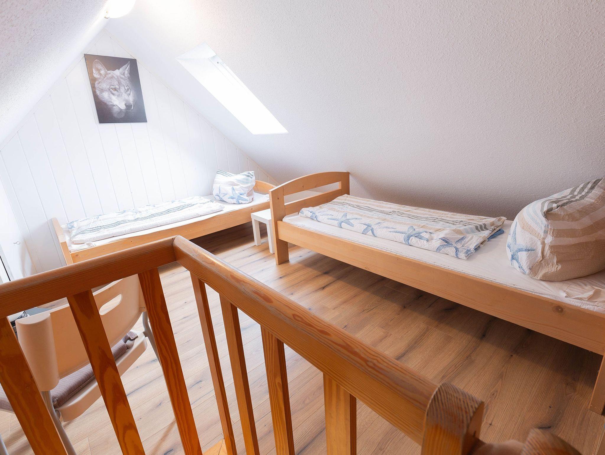 Das Ferienhaus Marisol liegt im Ortskern und trotzdem in ruhiger Lage am Kukshörner Weg 7d. Durch den Eingangsbereich mit Garderobe und Gäste-WC gelangen Sie in den hellen Wohn-/Essraum mit angrenzender moderner Küchenzeile. Weiter geht es auf die Süd-Terrasse mit Gartenmobiliar und Markisen-Sonnenschutz. Das Grundstück ist eingezäunt mit einer Zaunhöhe von circa 80 cm. Im ersten Obergeschoss kommen Sie ins modernisierte Duschbad mit Waschmaschine und Trockner. Hier gibt es ein Doppelschlafzimmer mit Holzkinderbett und ein Schlafzimmer mit zwei Einzelbetten. Das schöne, ausgebaute Dachzimmer bietet noch zwei weitere Schlafmöglichkeiten. Ihr eigener Stellplatz befindet sich direkt vor dem Haus. Der Eigentümer hat für Sie kostenfrei einen Strandkorb reserviert.