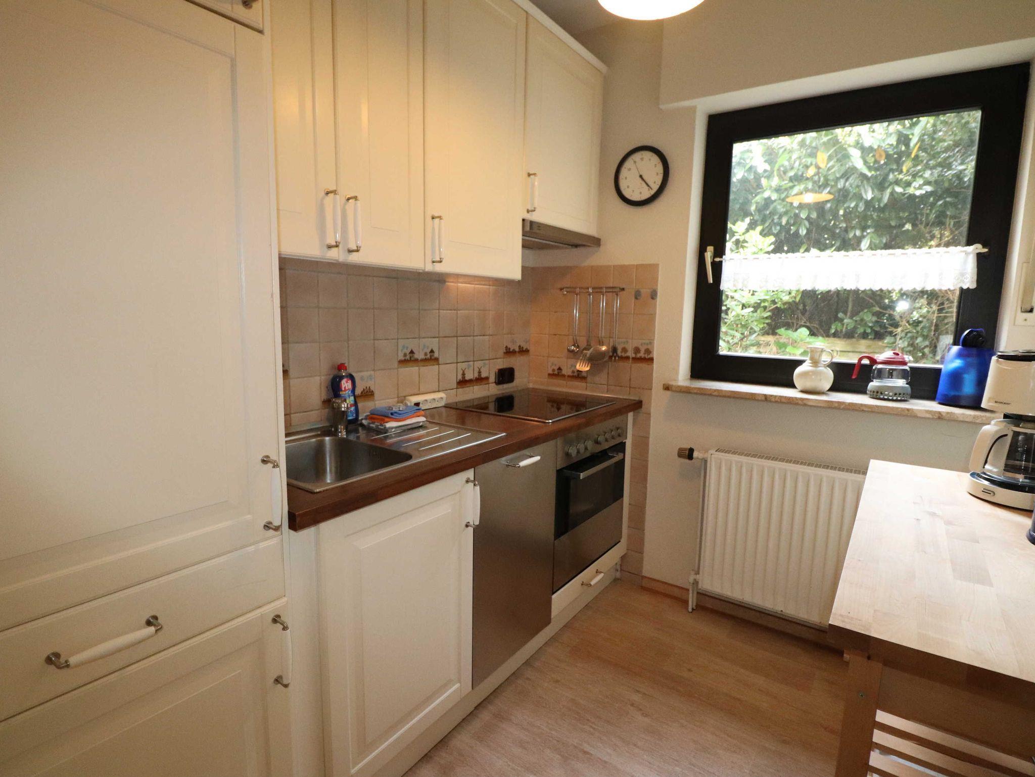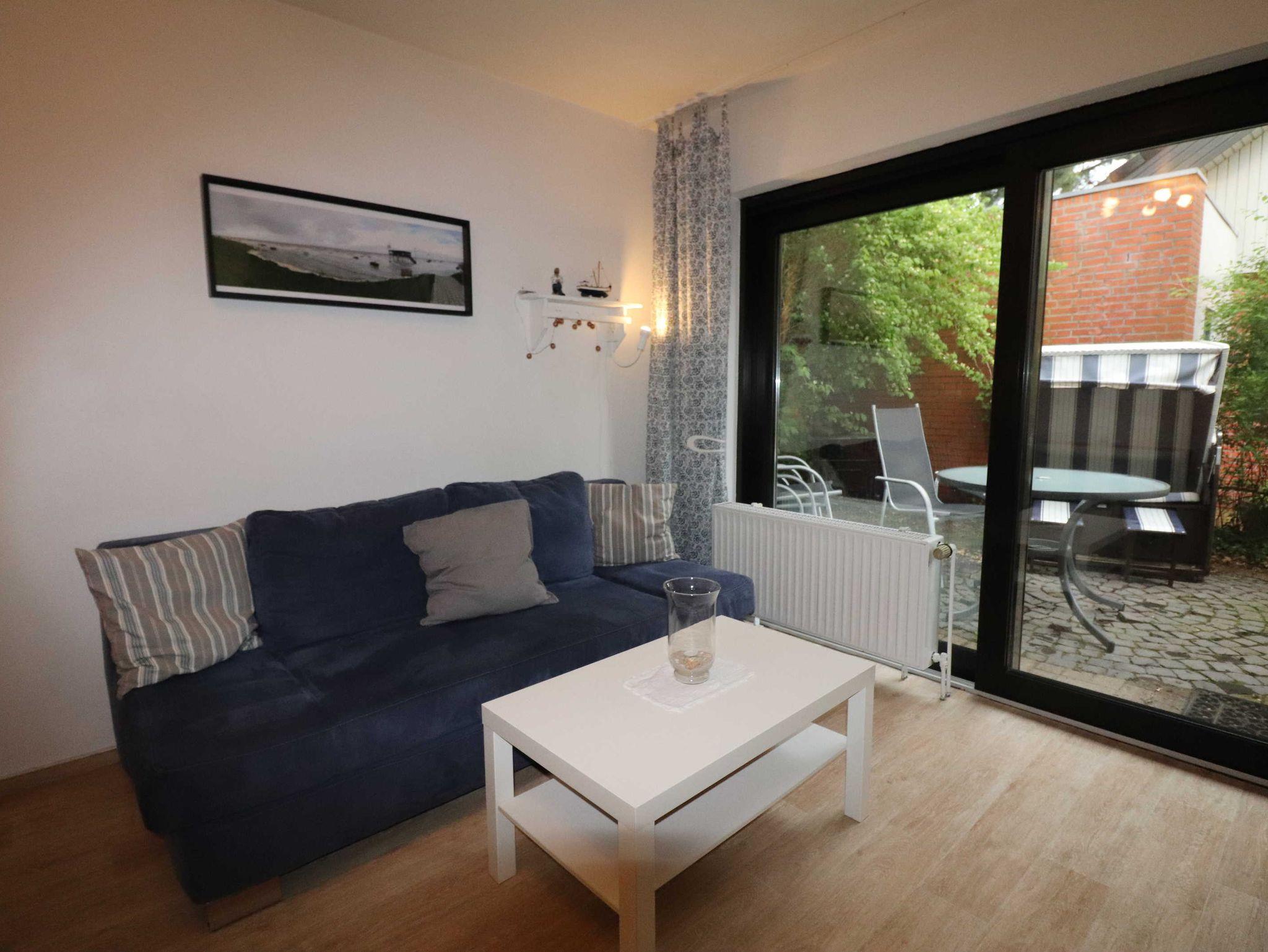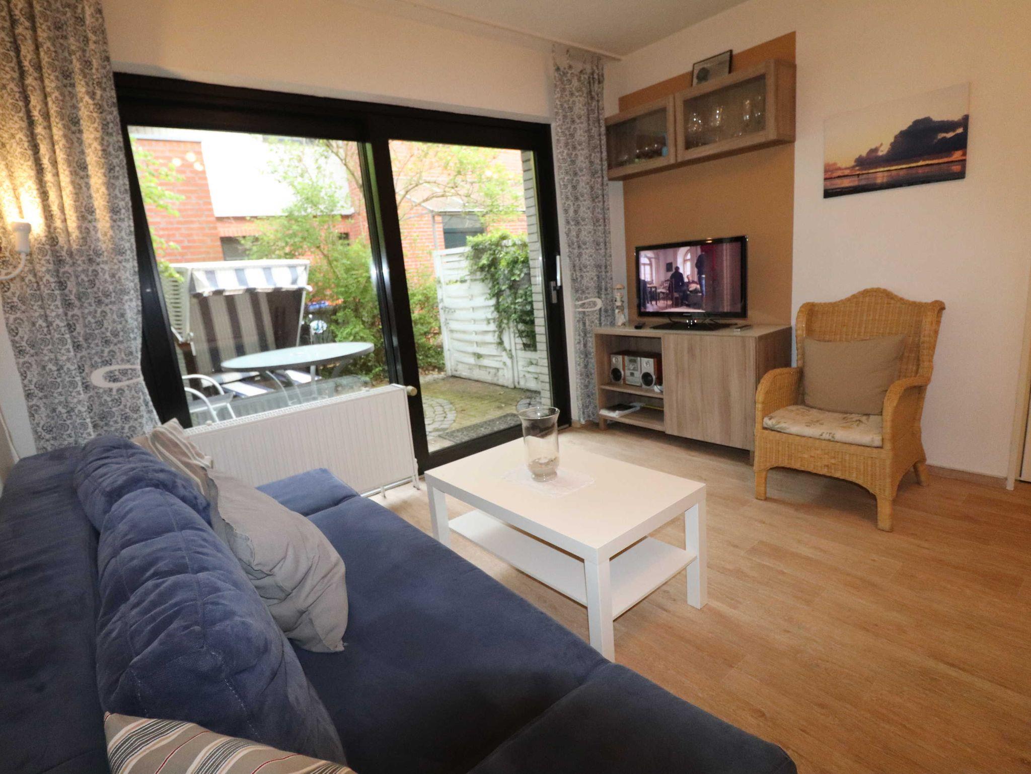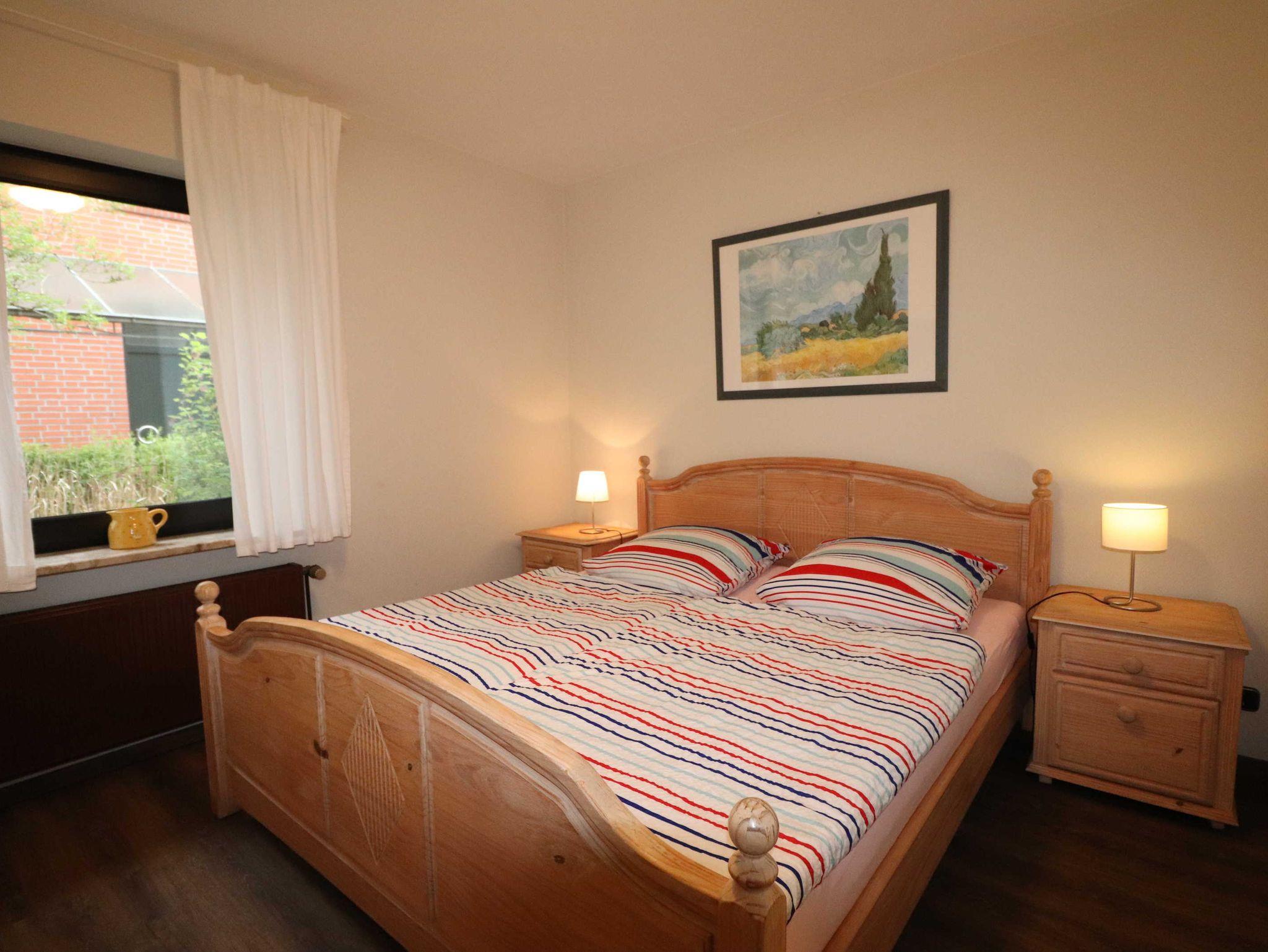 Die über einen eigenen Eingang erreichbare Einliegerwohnung im Erdgeschoss links verfügt über eine gemütliche, eingewachsene Südterasse, ausgestattet mit entsprechender Möblierung inklusive eines Strandkorbes. In der ca. 50m² großen Wohnung gibt es neben dem Wohn-/Esszimmer eine separate Küche sowie ein Schlafzimmer mit Doppelbett (1,80 m breit, 2 m lang), sowie ein Duschbadezimmer. Zudem verfügt diese Wohnung über eine eigene Waschmaschine, die Sie gegen ein kleines Entgeld nutzen können. Die Wohnung verfügt über eine moderne technische Ausstattung: neben einem Radio mit CD-Laufwerk steht Ihnen ein moderner Flachbildfernseher mit Satellitenempfang zur Verfügung. Die voll ausgestattete Küche bietet neben einer Mikrowelle, einem Kühlschrank und einer Kaffeemaschine auch einen Geschirrspüler, so dass Sie in Ihrem Urlaub auf keinen Komfort verzichten müssen. Die Wohnung ist barrierefrei, wenn auch nicht behindertengerecht ausgestattet -bei Fragen sprechen Sie uns gerne an! Für weitere Gäste lässt sich das Sofa im Wohnzimmer zu einem vollwertigen Doppelbett ausklappen, so dass insgesamt bis zu vier Personen in unserer Parterrewohnung Platz finden.