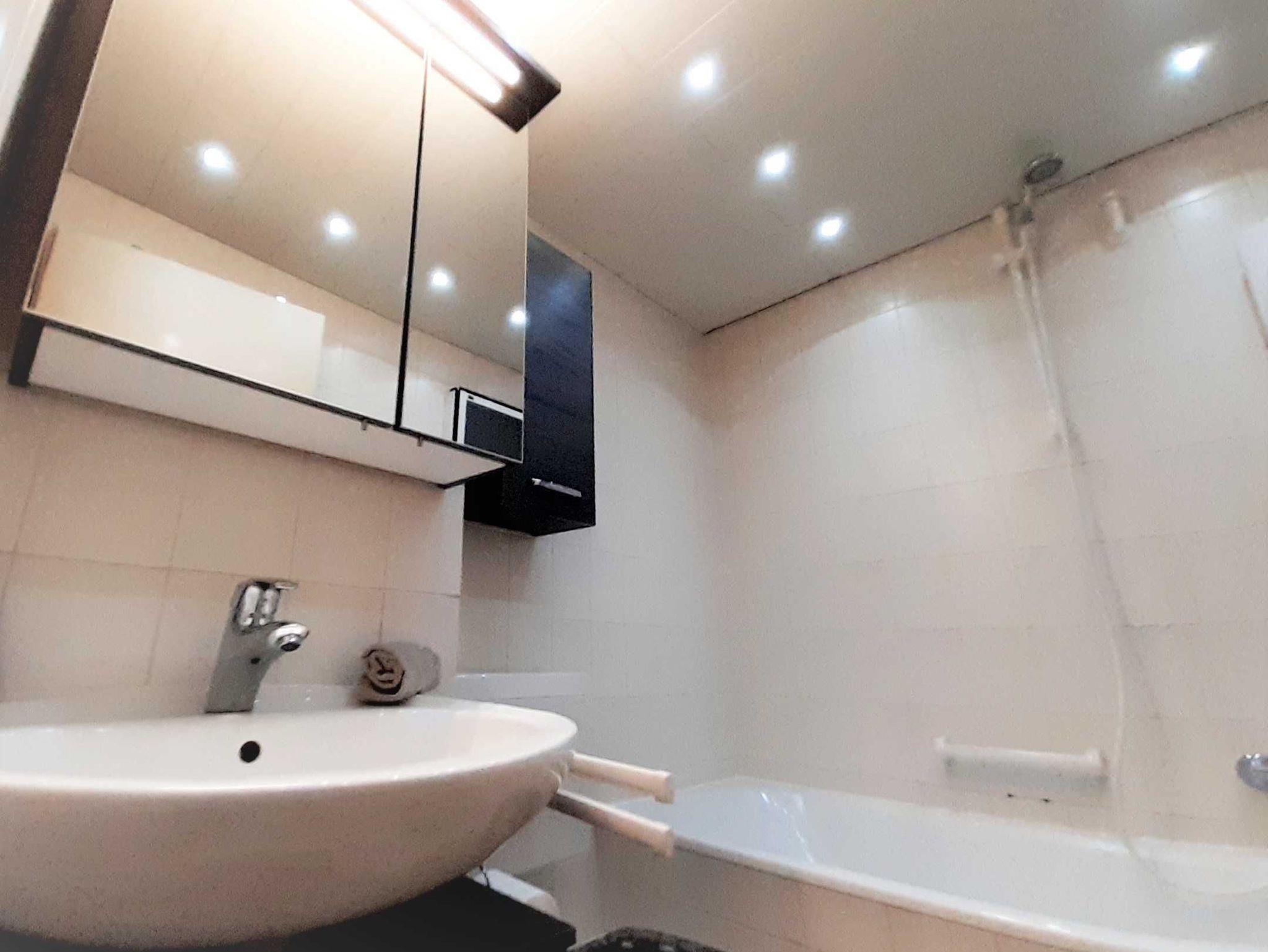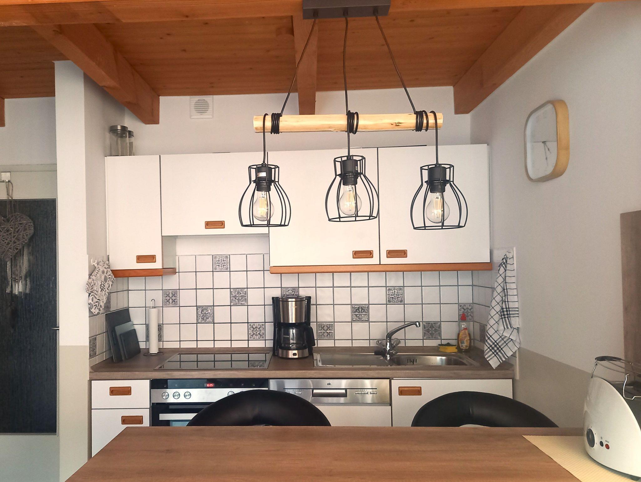 Sie verfügt über ein separates Schlafzimmer mit einem Doppelbett und einem Babybett, eine große Schlafcouch im Wohn- Essbereich, eine Küche mit allem, was man für einen Urlaub braucht und ein geräumiges Badezimmer mit Badewanne.