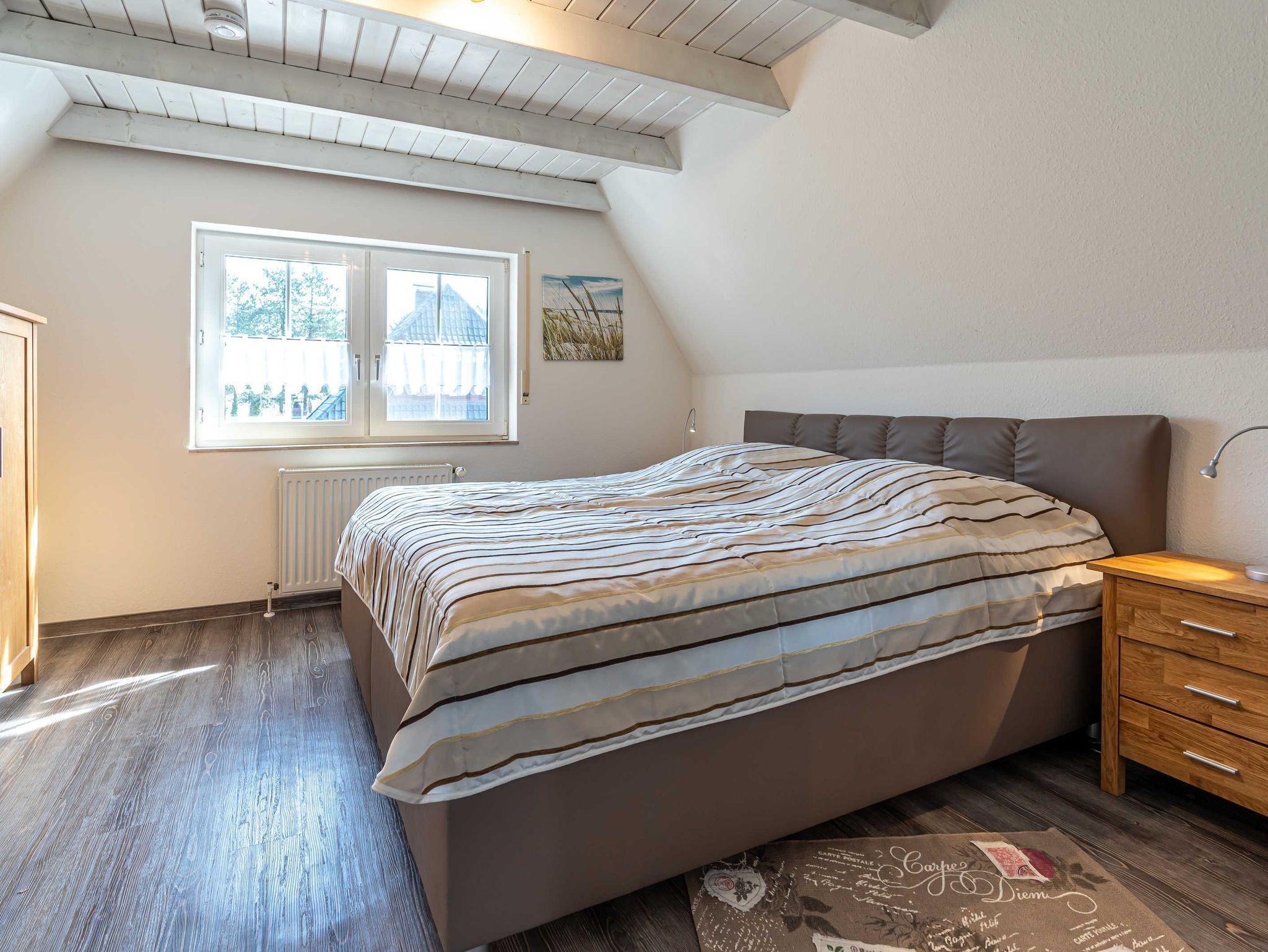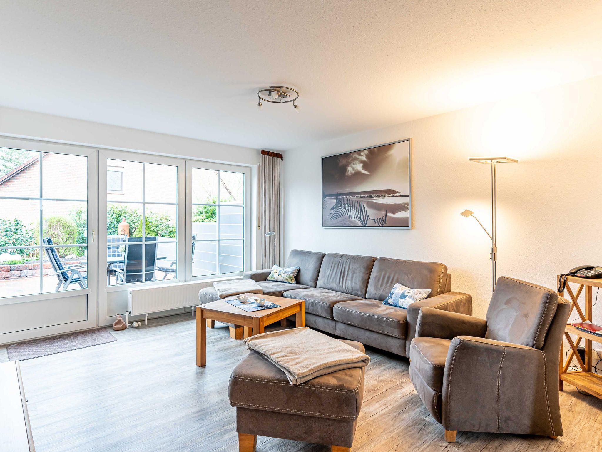 Hier fühlen Sie sich gleich wohl! Es erwartet Sie unser Ferienhaus Raue zu einem entspannten Nordsee-Aufenthalt. Direkt vor dem Haus liegt Ihr Auto-Stellplatz. Durch den Eingangsbereich mit Garderobe und Gäste-WC geht es zum kombinierten Wohn- und Essbereich mit und zur separaten voll ausgestatteten Küche. Im ersten Obergeschoss gibt es die beiden Schlafräume mit je einem Doppelbett - dieses ausgestattet mit Viscoflex-Matratzen - und zwei Einzelbetten sowie ein Duschbad mit Tageslicht. Es erwartet Sie eine große, gepflegte Terrasse, auf der es sich herrlich entspannen lässt.