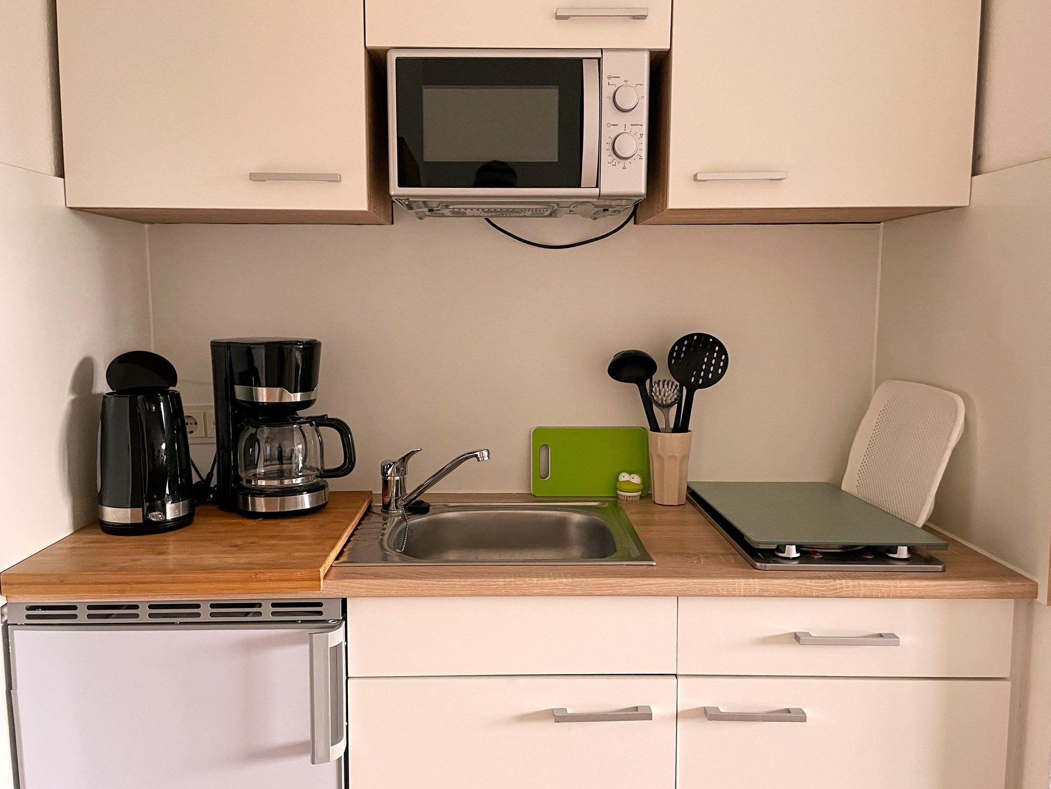 2-Herdplatten, Mikrowelle, Toaster und Kaffeemaschine