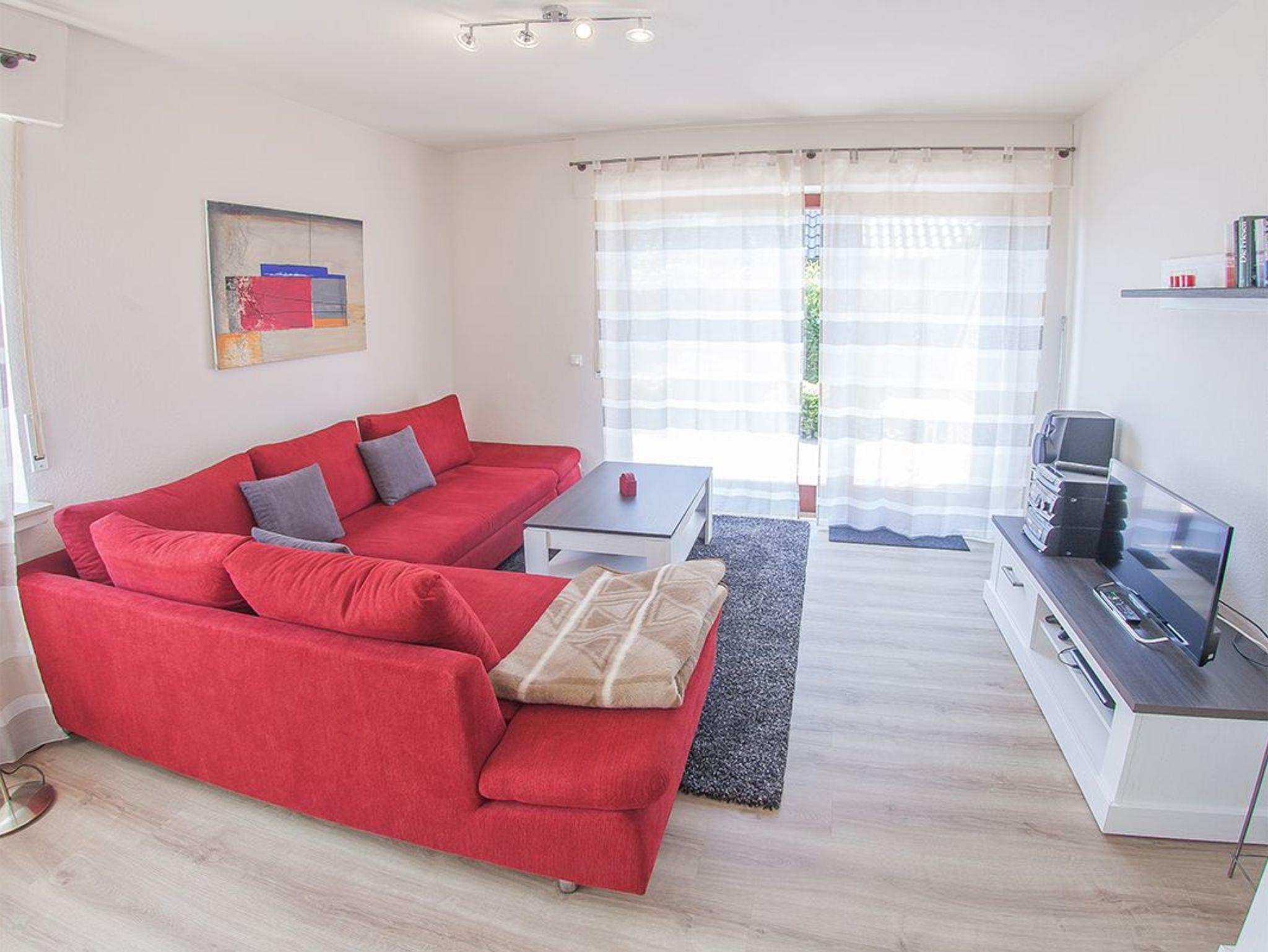 Herzlich Willkommen in unserer Ferienwohnung Albert . In Nähe des Strandes urlauben hier bis zu vier Personen in der modern möblierten Erdgeschosswohnung. Sie gelangen durch den Dielenbereich links zur hellen Küchenzeile mit vorgelagertem Essplatz und zwei geräumigen Wandschränken sowie geradeaus in das Wohn-/Schlafzimmer mit komfortablem Sitzbereich, einer Ausziehcouch und einem Schrankbett in 160x200 für zwei Personen. Wir halten ebenfalls ein weiteres Schrankbett für eine Person für Sie bereit. Entspannen können sie auf der eingegrünten, sichtgeschützten Terrasse mit Markise und Gartenmobiliar.