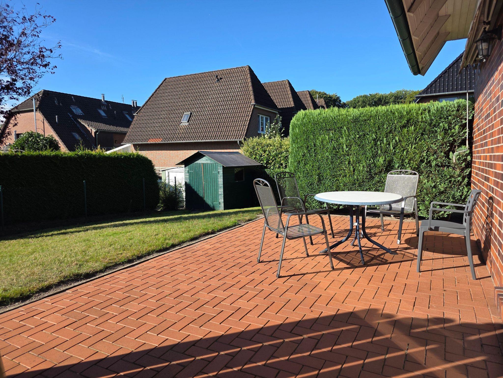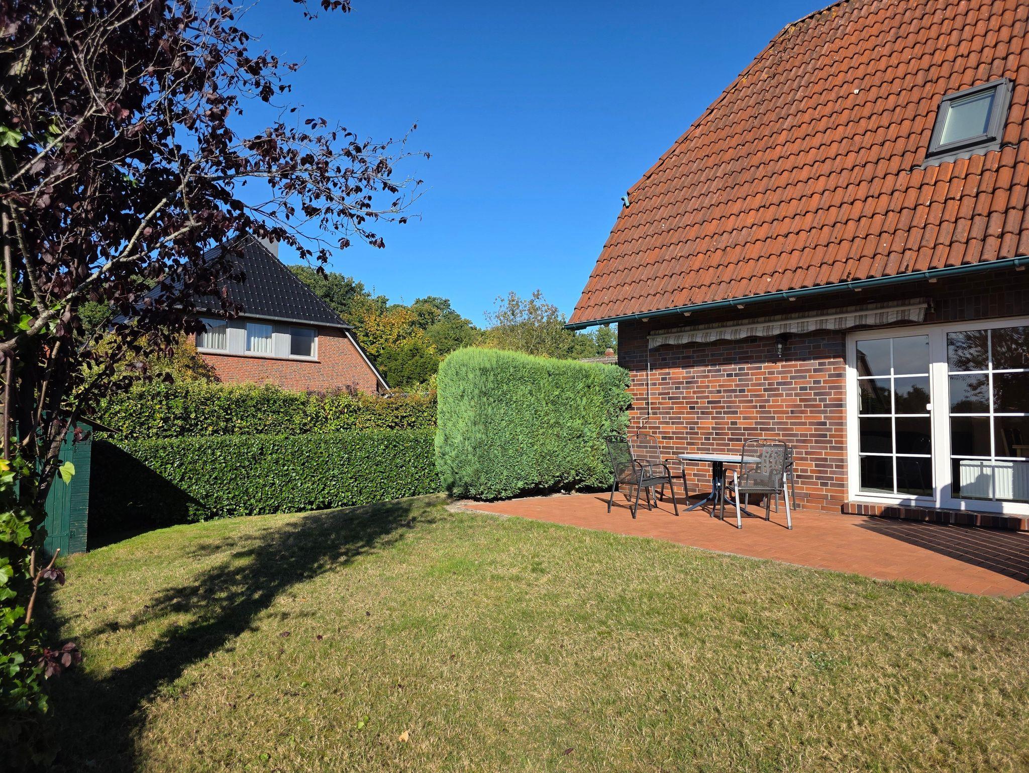 Das Haus Nölker hat einen schönen Garten mit Südterrasse. Es gibt einen überdachten Carport.