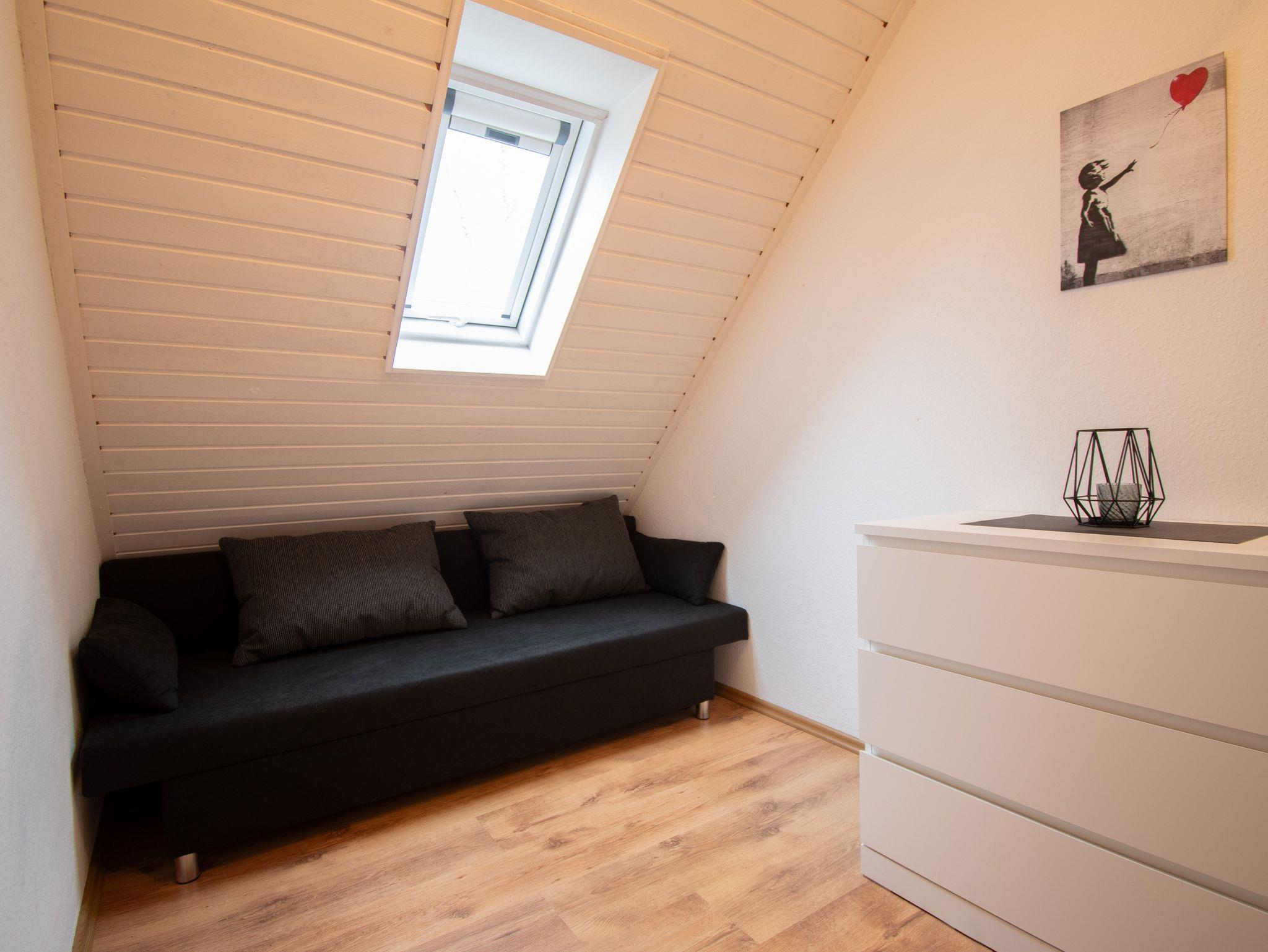 Moin und Willkommen im Reihenmittelhaus Hübner, Hollwert 39e. Strandnah gelegen und in ruhiger Sackgassenlage ideal für die Familie und den Hundefreund. Ab Diele geht es links in die separate Küche. Hier befindet sich auch das Gäste-WC mit Waschmaschine. Geradeaus geht es weiter in den Wohnbereich mit Essplatz und Terrassenausgang. Schlafmöglichkeiten für fünf Personen befinden sich im ersten Obergeschoss und im Dachgeschoss; ein Schlafzimmer mit Doppelbett und eines oben mit zwei Einzelbetten. Eine 140x200 Schlafcouch steht auf der Flurebene. Die Terrasse ist sichtgeschützt durch zwei Holzelemente und begrünt. Ihr Fahrzeugstellplatz befindet sich unmittelbar vor der Reihenhausanlage.