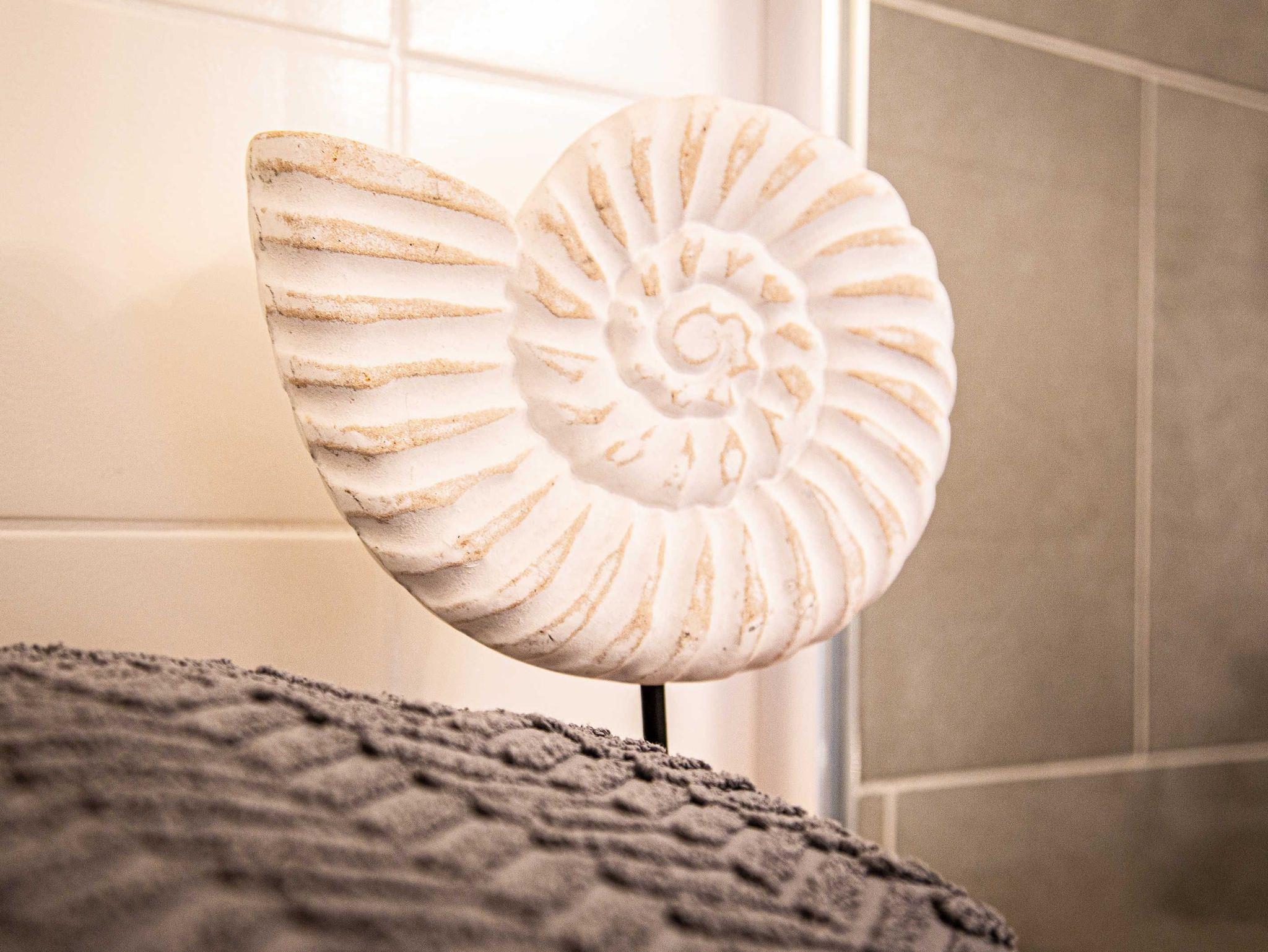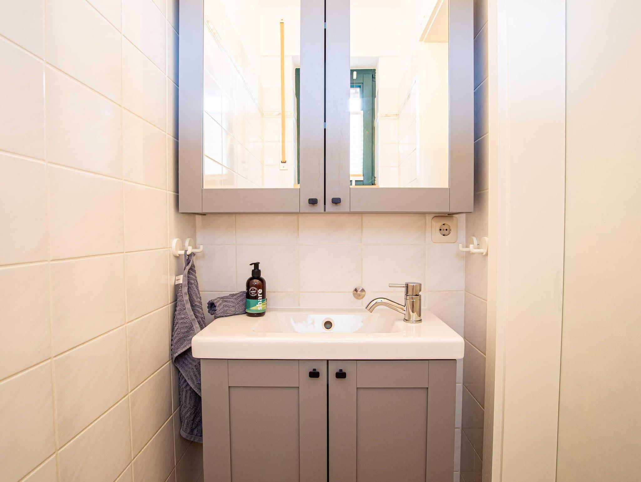 Im ersten Obrgeschoss befinden sich drei freundlich und hell eingerichtete Schlafzimmer. Ein Schlafzimmer mit Doppelbett, ein Zimmer mit Etagenbett sowie das dritte Zimmer mit einem Babybett sowie einem Einzelbett. Auf dieser Ebene ist auch das moderne helle Duschbad mit Waschplatz.