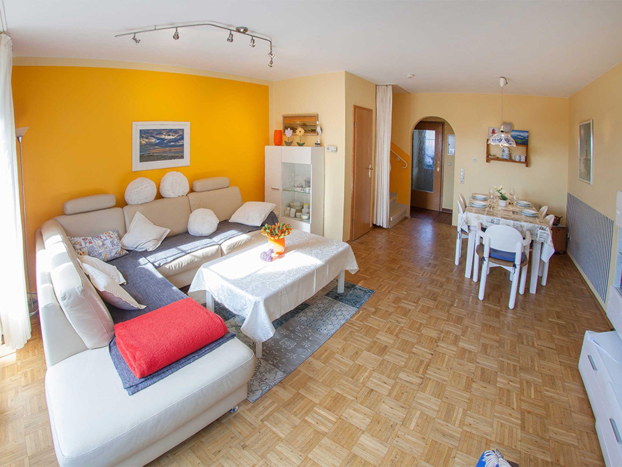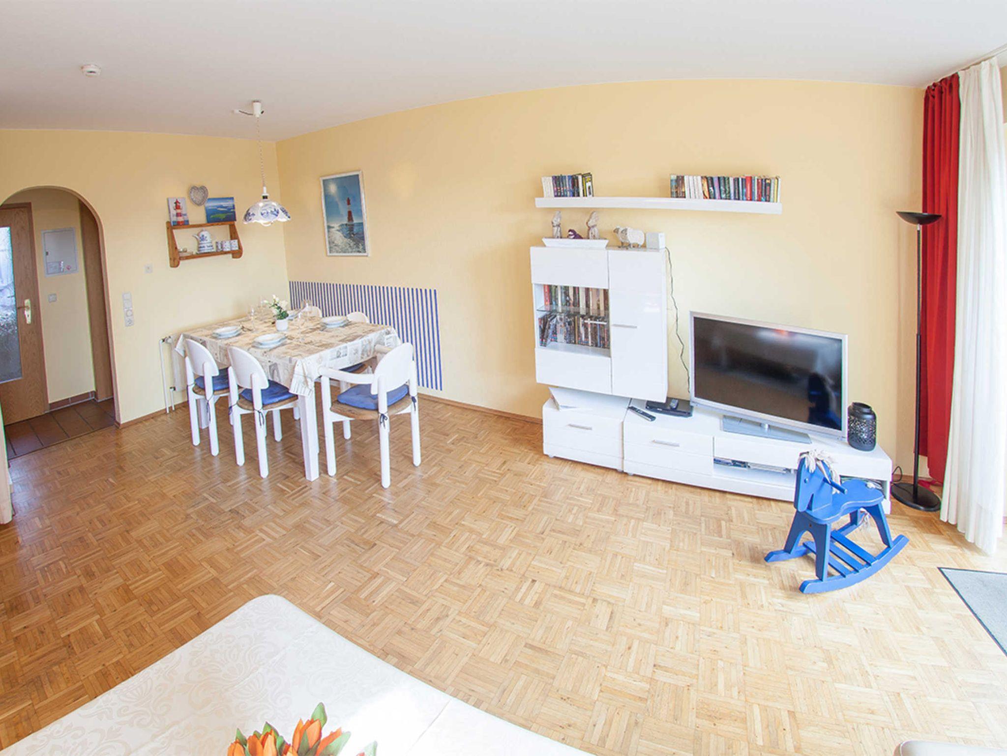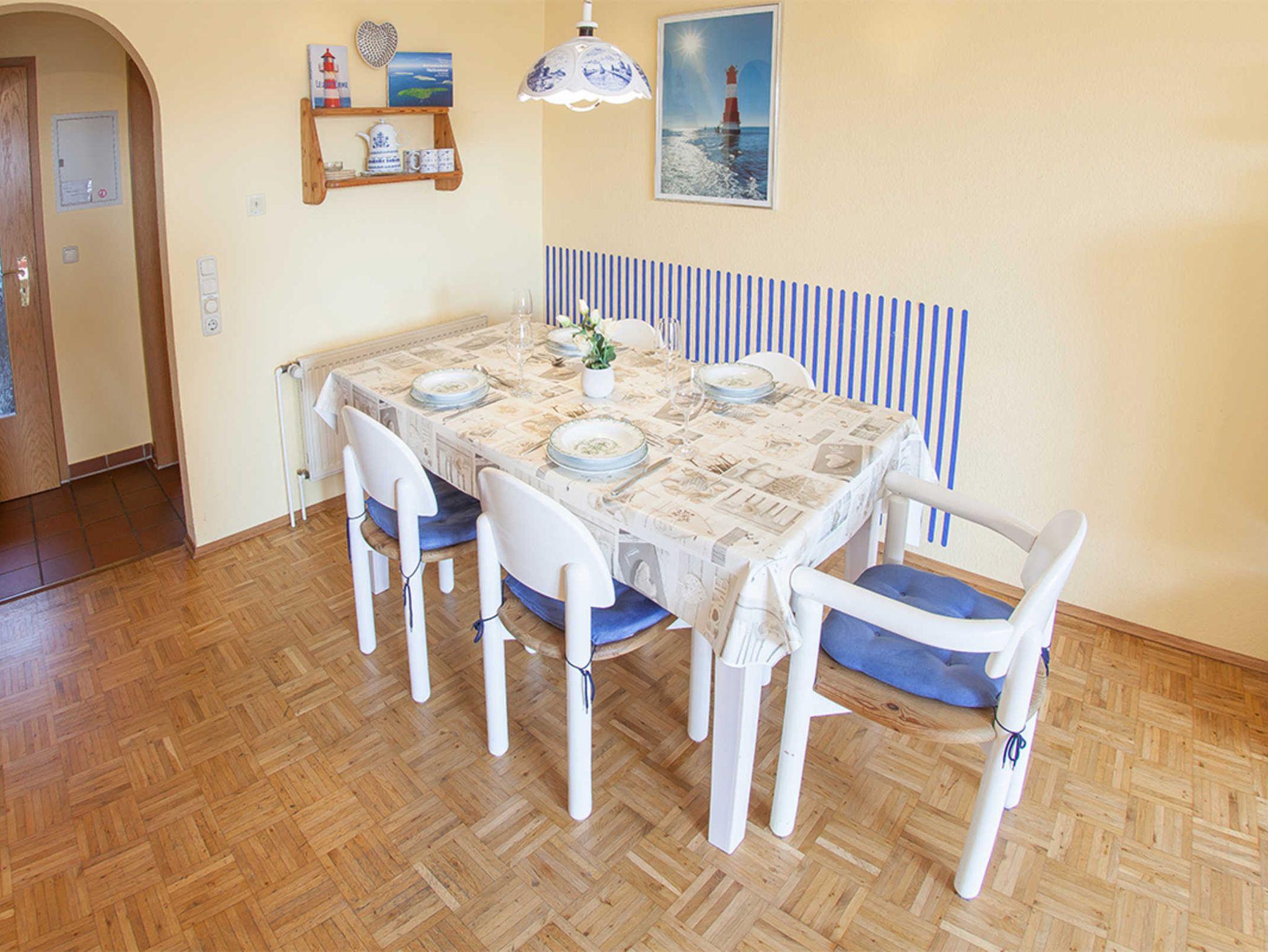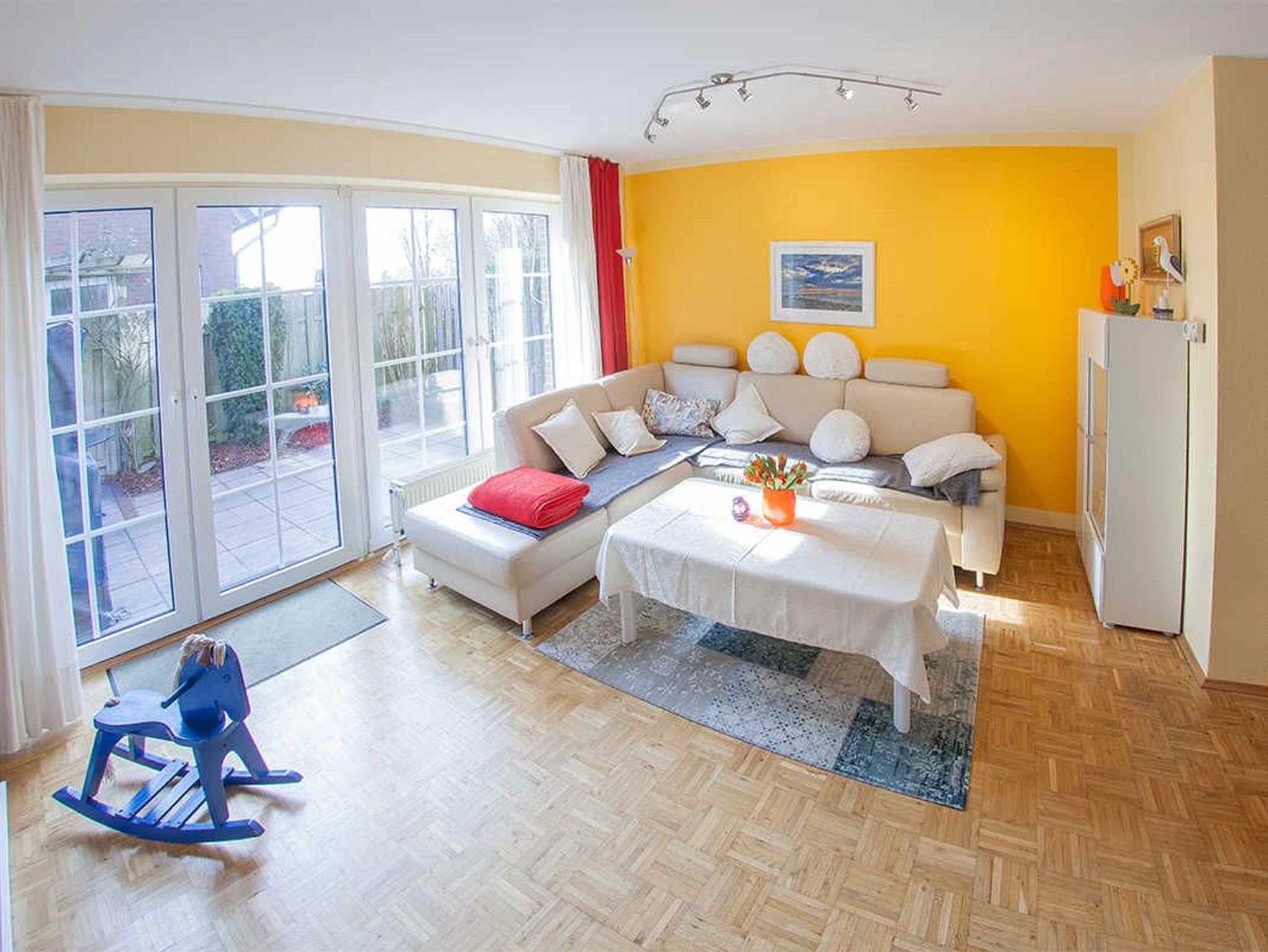 Unser Domizil liegt ortsmittig in Ruhiglage in einer Wohnstraße mit Stellplatz vor dem Haus. Ab Diele gelangen Sie in die separate Küche und ins Gäste-WC. Weiter durch erwartet Sie der in mediterranen Sonnenfarben eingerichtete Wohn/Essraum mit Ausgang zur Terrasse. Im ersten OG liegt das helle Fenster-Duschbad mit Waschmaschine und Trockner. Hier befinden sich zwei Schlafräume. Einer mit Doppelbett und Wandkleiderschrank, im anderen befindet sich ein Einzelbett und eines in der Größe 140x200. Auch die Schlafräume sind ansprechend gestaltet. Auf der Eck-Terrasse entspannen Sie in frischer friesischer Luft.