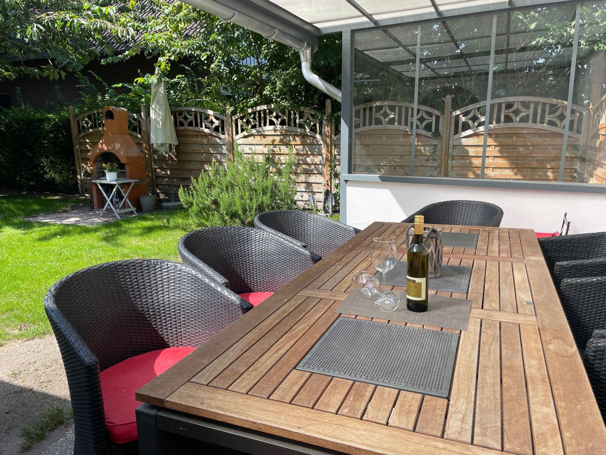 200m2 großer Garten mit 2 Terrassen - eine überdacht in Süd-/Westlage