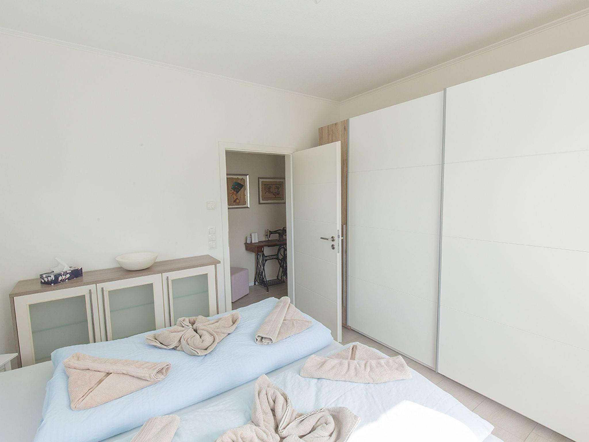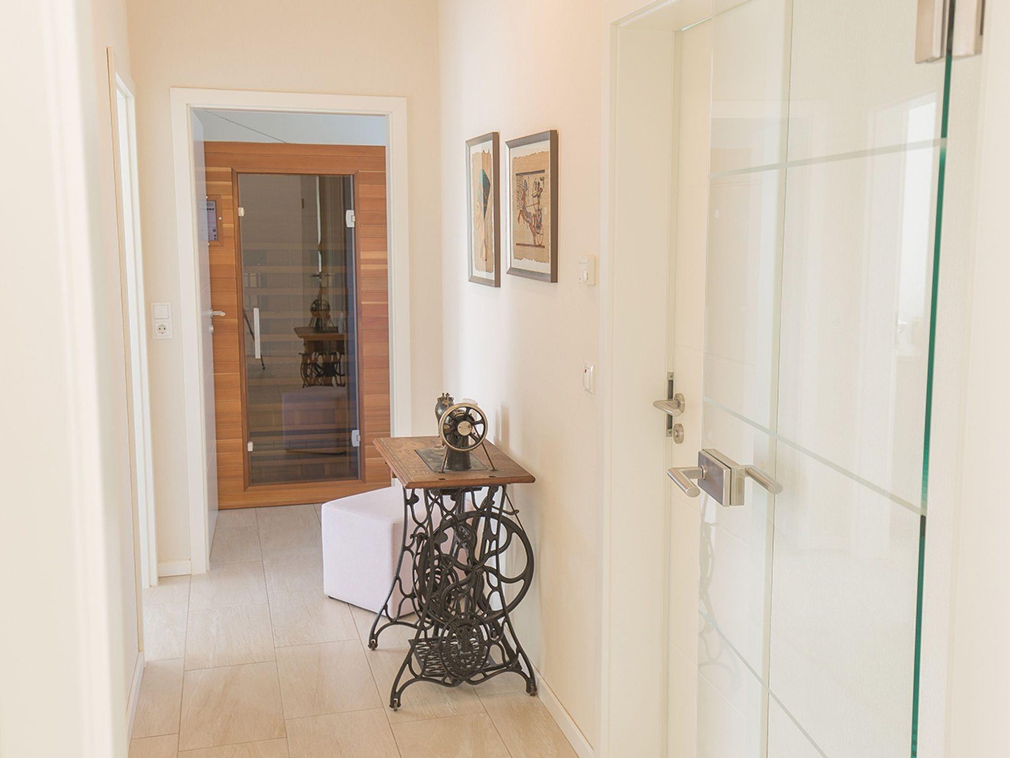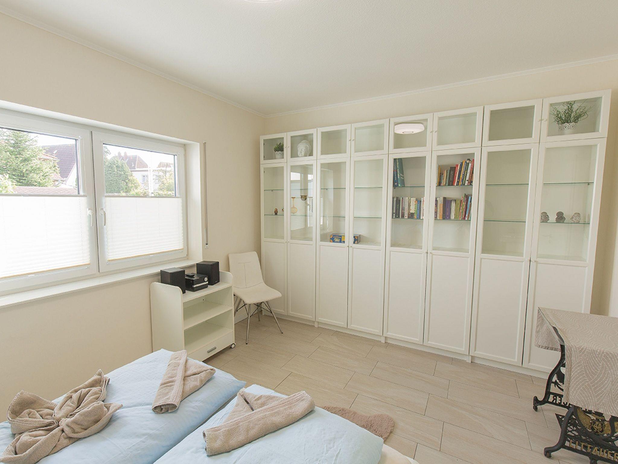 Das Haus verfügt über drei Schlafräume mit je einem Doppelbett und mit einem ausziehbaren Schlafsofa 140x200 cm. Das Schlafsofa befindet sich im Kinderzimmer und dort können Sie in der Infrarotsauna Wärme tanken. Oder nutzen Sie den Schreibtisch im Rahmen ihrer Workation.