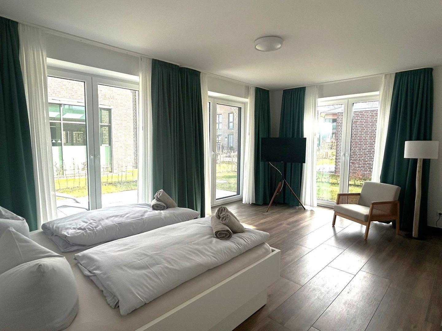 Das Haus Bootsmann ist ein modernes Ferienhaus mit 170 m² auf 3 Etagen. Es bietet Platz für 6 Personen, 3 Schlafzimmer und 3 Badezimmer mit bodengleichen Duschen. Offene Küche, WLAN, 3 TVs, Sauna zur Eigennutzung (verfügbar ab 05/2026), Balkon, Terrasse, Garten mit Gasgrill sowie 1 Privatparkplatz. Der Sandstrand und das Meer sind nur 700 m entfernt, Restaurants bereits nach 250 m.
