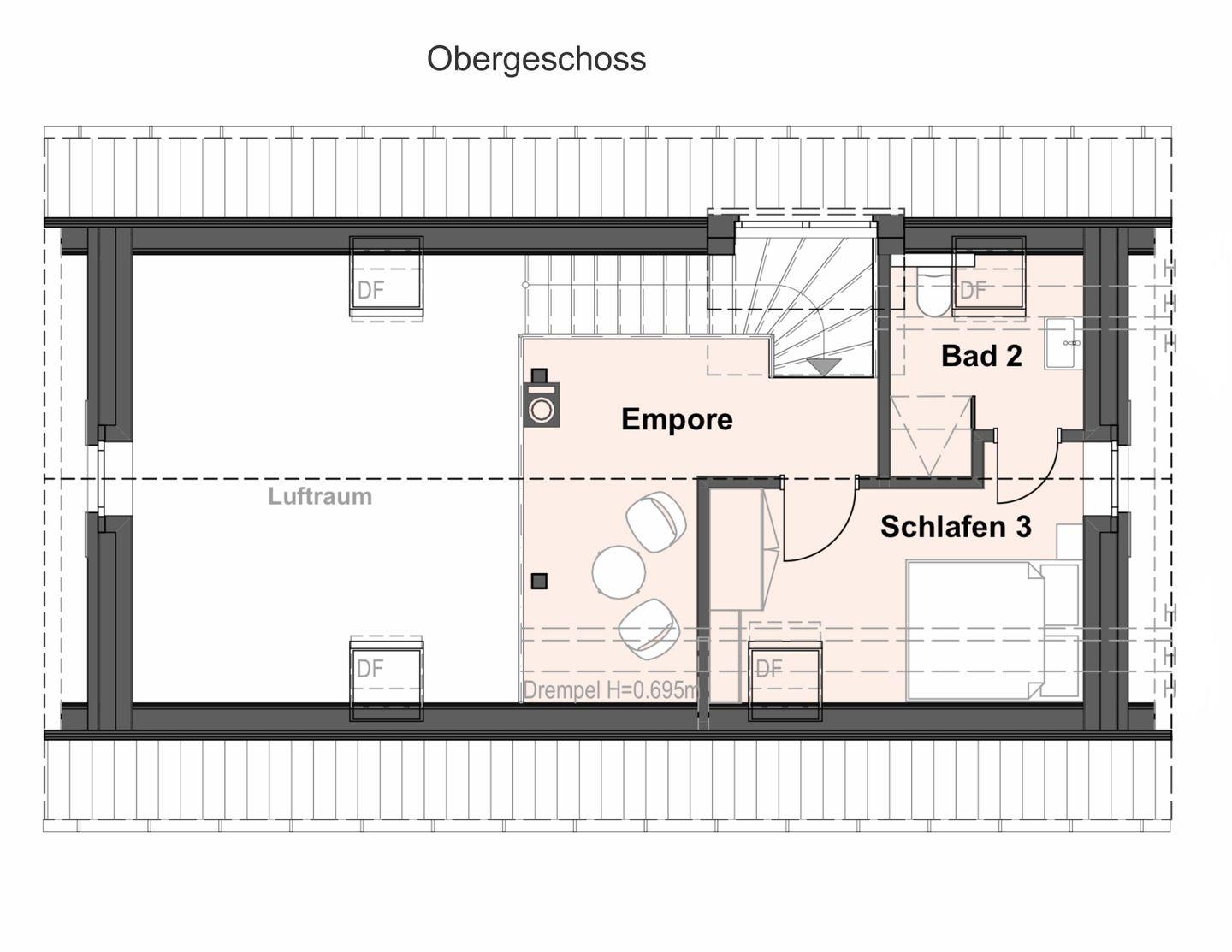 Duschbad im OG: bodentiefe, barrierefreie Regendusche, Waschtischanlage mit Spiegel, WC, Handtuchheizung, Haartrockner
