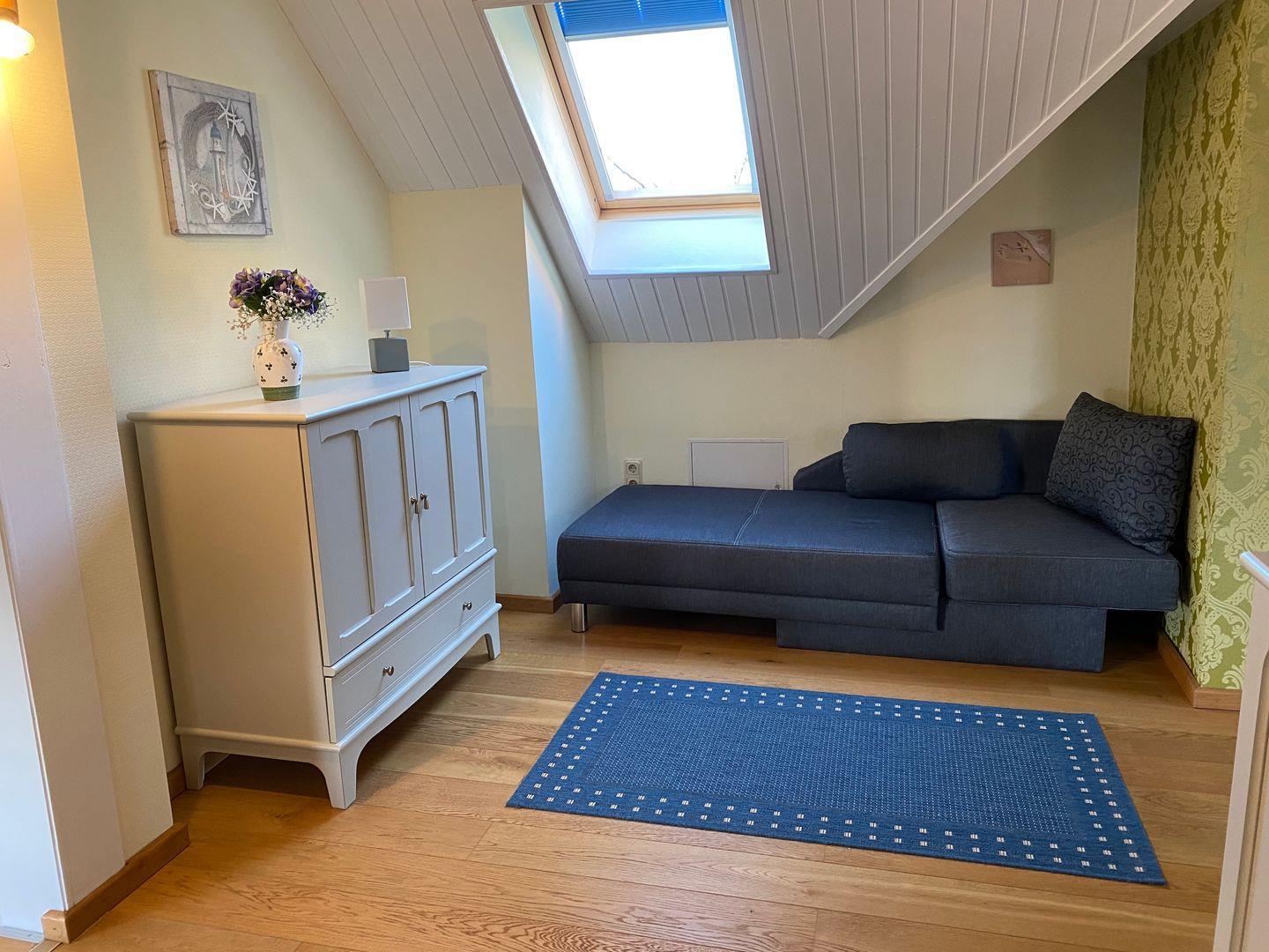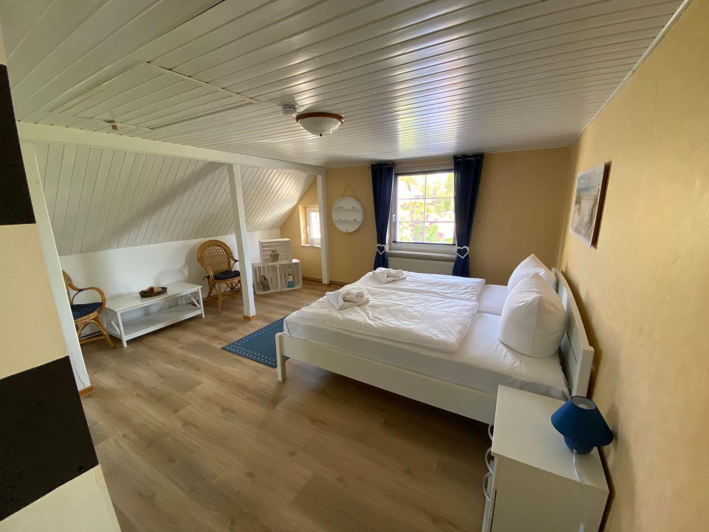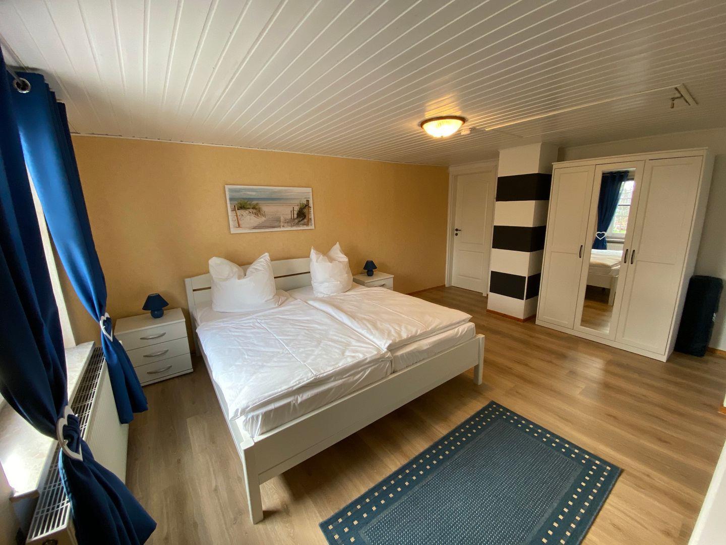 Die Ferienwohnung "Goor" befindet sich im ersten Obergeschoß des Reethauses. Sie bietet auf ca. 92 qm Wohnfläche maximal 5 Personen Platz. Die Wohnung besteht aus zwei Schlafzimmern mit je einem Doppelbett und einem Wohnzimmer mit einer Schlafcouch, wo eine weitere Person übernachten kann. Im Wohnzimmer gibt es einen Flachbild-TV und DVD-Player. Die separate Küche bietet neben einem Ceranherd, Backofen, Geschirrspüler, Mikrowelle natürlich auch Kaffeemaschine, Toaster und Wasserkocher. Im Bad gibt es eine Dusche und einen Haartrockner. Eine Waschmaschine steht zur gemeinschaftlichen Nutzung zur Verfügung. Ein Kinderbett sowie ein Hochstuhl sind vorhanden. Haustiere sind willkommen! Bitte beachten Sie, dass für Haustiere zusätzliche Gebühren erhoben werden.