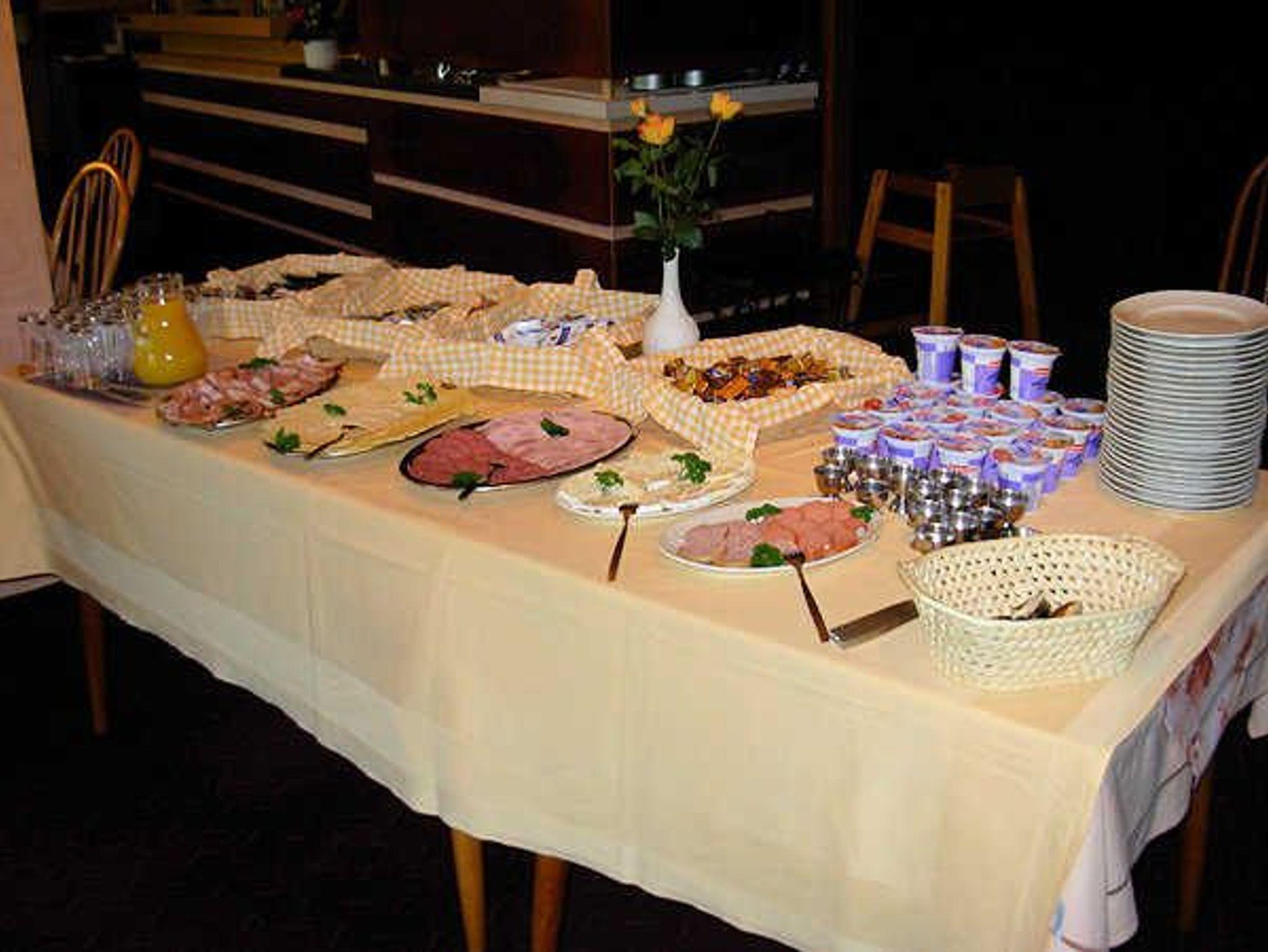 Im Parterre befindet sich das Restaurant. Hier können Sie zu jeder Tageszeit eine entsprechende Mahlzeit einnehmen. Morgens bedienen Sie sich selbst am reichhaltigen Frühstücksbuffet, nachmittags können Sie auf unserer Sonnenterrasse frische Torten und Kuchen aus eigener Herstellung genießen und abends wählen Sie aus der Karte, die Speisen aus der guten fränkischen Küche, sowie fangfrische Forellen und Wildgerichte umfasst. In unserem Kaminzimmer finden Sie immer ein beschauliches Plätzchen in wohliger Atmosphäre. Eine Spielwiese für Kinder ist ebenfalls vorhanden genauso wie genügend Parkplätze direkt vor der Haustüre.