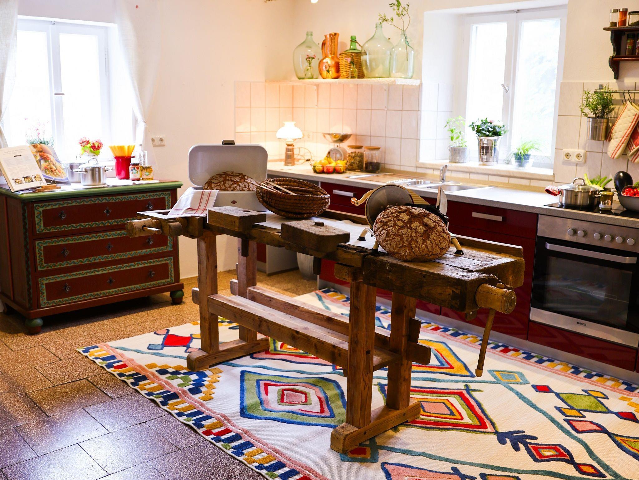 Das Landhaus erstreckt sich großzügig über 2 Etagen, auf 230 qm Wohnfläche mit 6 gemütlichen Schlafzimmern und 3 Bädern. Als kleines Willkommensgeschenk, steht für Sie bei Anreise ein Laib Brot aus eigener Herstellung mit Butter bereit.
