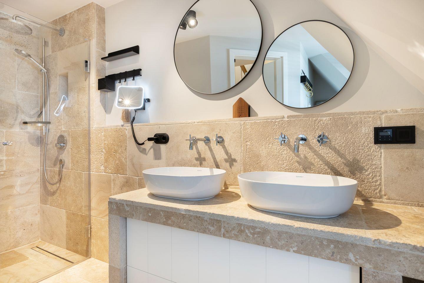 UG: ein Schlafzimmer mit Doppelbett (1,80 x 2,00m) und Smart TV, Badezimmer mit Dampfbad ( kombiniert mit der Dusche ) und WC, im UG befindet sich noch ein Weinkühlschrank und ein Eiswürfelbereiter