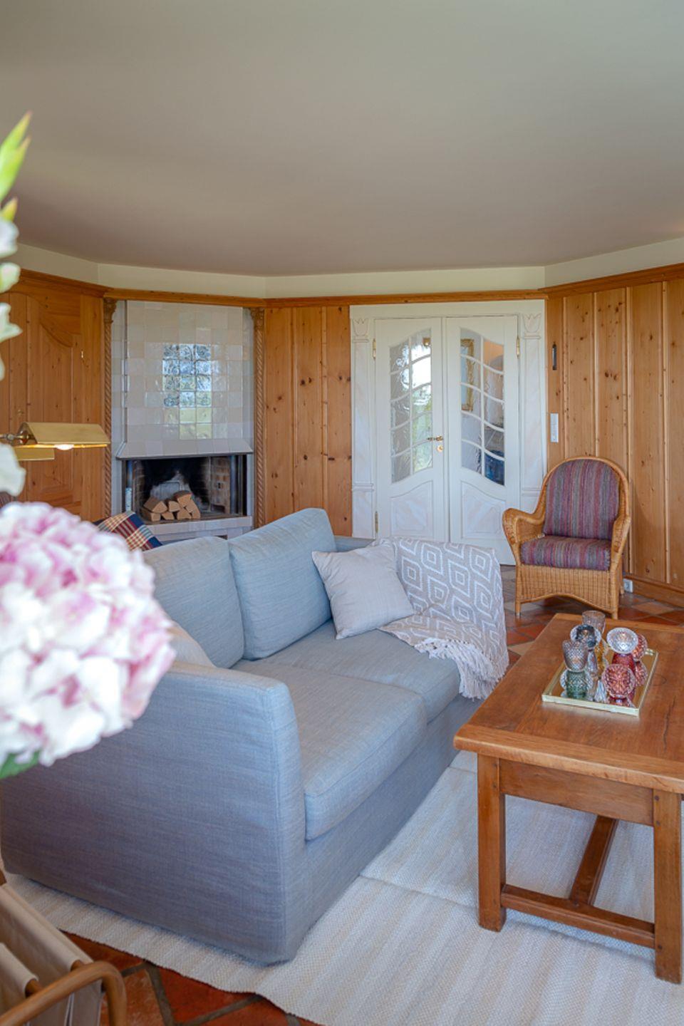 Verbringen Sie verträumte Stunden in Ihrem behaglichen Wohnzimmer, in dem Sie im Winter am Kamin sitzen und den unverstellten Blick auf das Meer genießen können. In diesem Haus wird das Motto „Wertschätzung statt Vergeudung“ großgeschrieben und so bietet Ihnen der leicht separate Küchenbereich – im Sinne der Nachhaltigkeit – eine gelungene Kombination aus hochwertiger Ausstattung und älteren Küchengeräten, durch die sich die Selbstversorgung im Urlaub einfach gut anfühlt.
