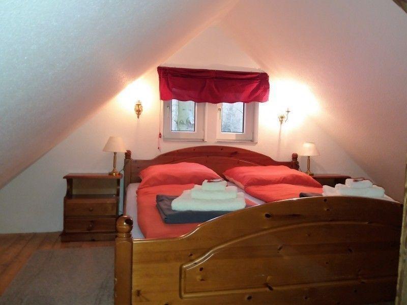 Das gemütlich eingerichtete Ferienhaus hat eine Wohnfläche von ca. 65m². Sie finden ein Bad mit Wanne und Dusche, eine komplett ausgestattete Küche, einen Flur mit Garderobe, ein großes gemütliches Wohnzimmer mit Kamin, ein Kinder- oder Schlafzimmer mit einem Einzelbett und TV und im ausgebauten Dachgeschoss ein romantisches Schlafzimmer mit Doppelbett und einem Schreibtisch.