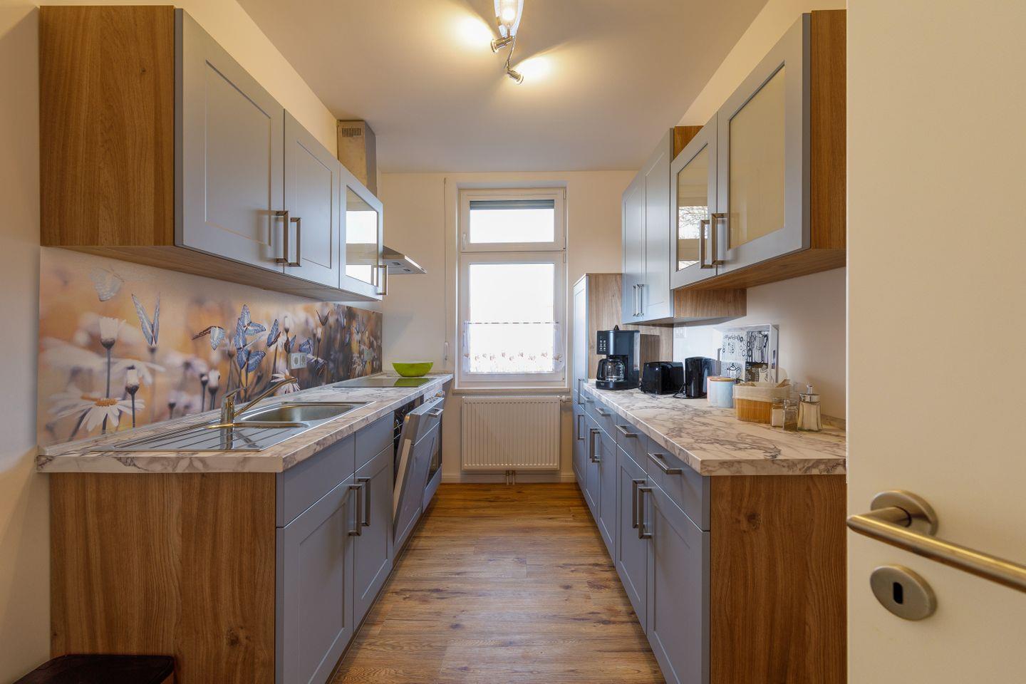 In der voll ausgestatteten, modernen Küche können leckere Mahlzeiten zubereitet werden. Sämtliche Elektrogeräte wie zum Beispiel Herd, Spülmaschine, Kaffeemaschine und Toaster sind selbstverständlich vorhanden.