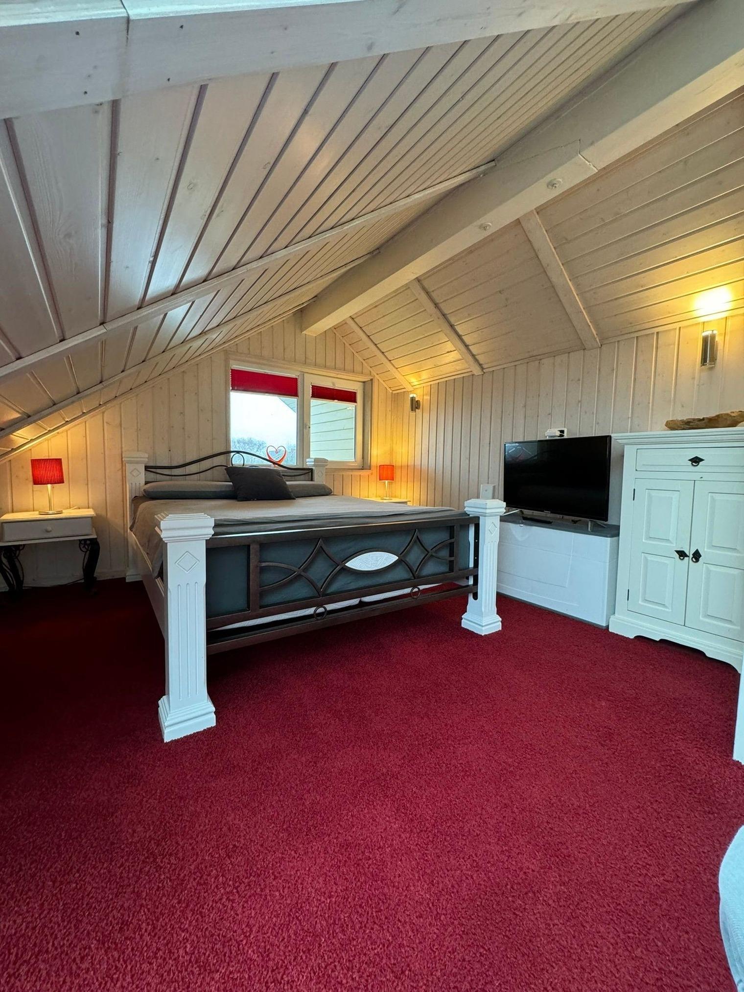 Die Panoramaverglasung bietet einen herrlichen Blick aus dem Wohnzimmer und Schlafzimmer in den 1.500 m² großen, schönen Garten, auf den hauseigenen Teich und den Nordseedeich. Eine Ruheoase pur. Zwei überdachte Terrassen nach Süden und Osten und 2 PKW-Stellplätze stehen zur Verfügung. Wohnzimmer und 3 Schlafzimmer sind mit LED-Flachbildschirmen ausgestattet. Der Wohnraum bietet mit schönem Kaminofen Raum zum Wohlfühlen und entspannen an kalten Tagen. Mit Ausnahme der Galerie sind alle Räume ebenerdig barrierefrei. Wlan, Hifi-Anlage, gemütliche Couchgarnitur und hochwertiger Esstisch für bis zu 6 Personen lassen keine Wünsche offen. Die moderne Einbauküche ist voll eingerichtet mit Geschirrspüler, Mikrowelle sowie Kühl- u. Gefrierschrank und Spülmaschine. Die Heizung erfolgt über Heizkörper aber auch alternativ über Fußbodenheizung. Genießen Sie das Wellnessbad mit hohen Decken, Whirlpool-Wanne, großer Dusche und Sauna.
