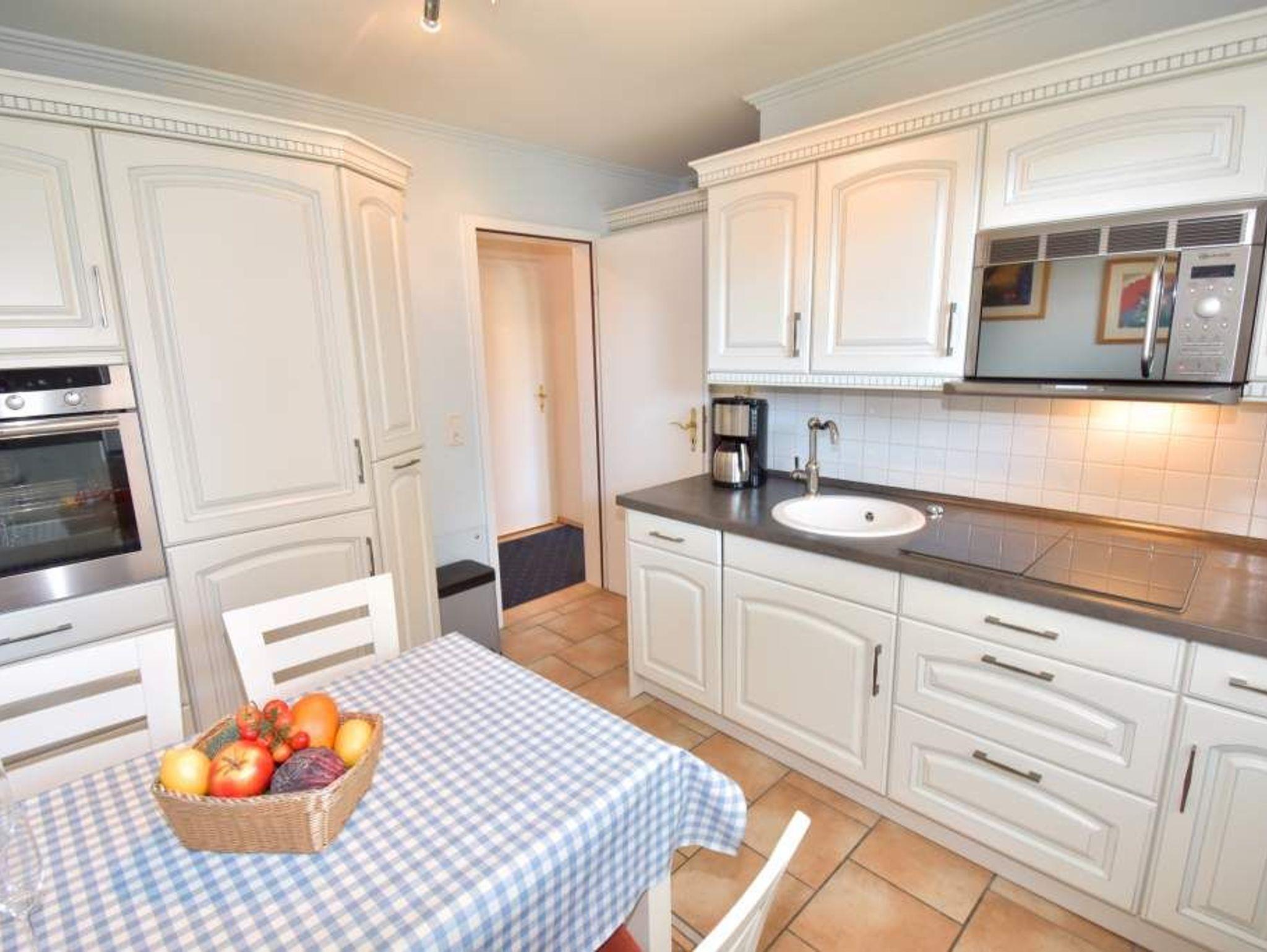Die mit allem Komfort ausgestattete separate Küche bietet einen Geschirrspüler, Mikrowelle, Ceranfeld mit Backofen, Kühl- und Gefrierschrank und einen Essplatz für 4 Personen mit Tageslicht. Kaffeemaschine, Wasserkocher und Toaster gehören zur Grundausstattung.